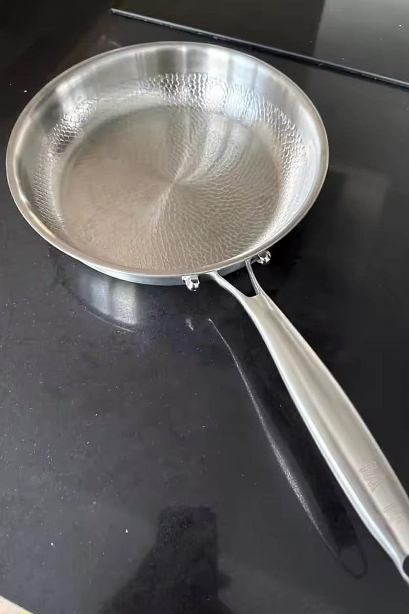 The Crisporia Titanium Frying Pan replaces toxic chemistry with physical engineering. A unique forged pattern creates a natural non-stick effect.