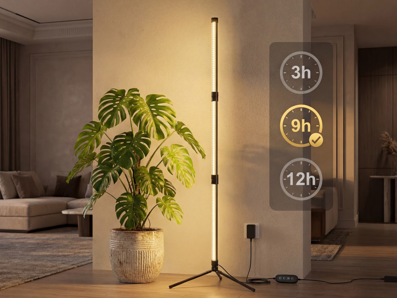 The built-in timer automatically manages your plants' light cycles with 3, 9, or 12-hour presets, mimicking natural day/night patterns even when you're away.