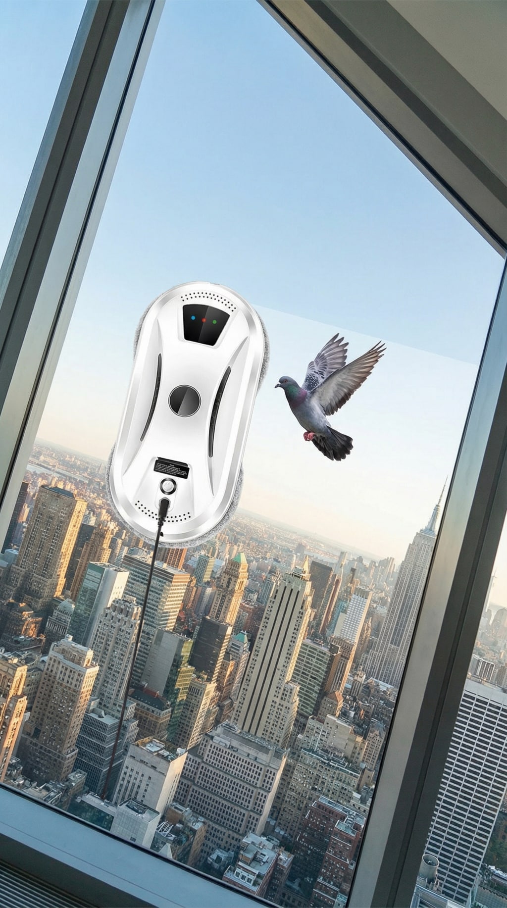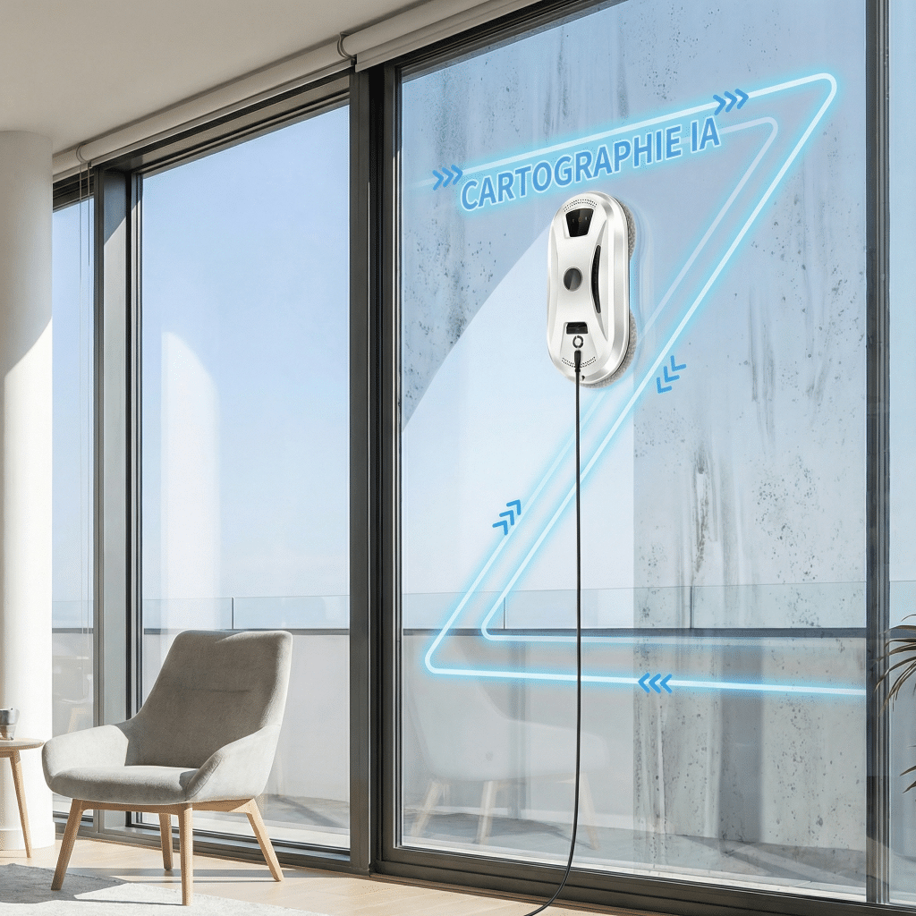 Le robot intelligent qui nettoie vos fenêtres en hauteur en toute sécurité. Fixez-le, appuyez sur démarrer et laissez la technologie faire le reste.
