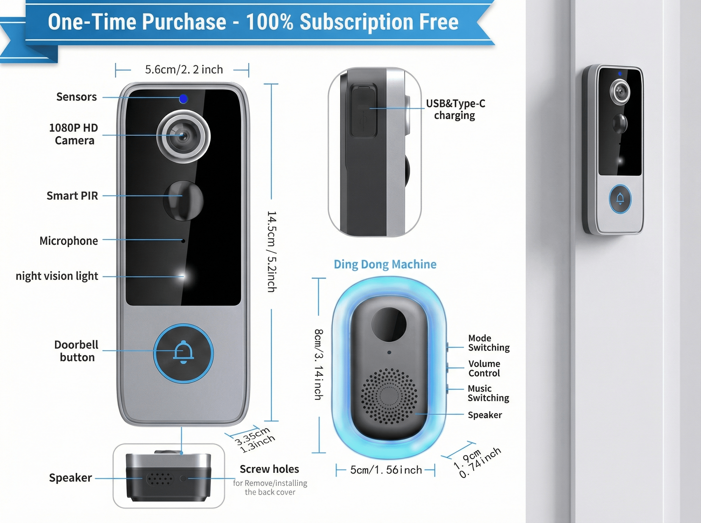 1080P HD smart doorbell without subscription