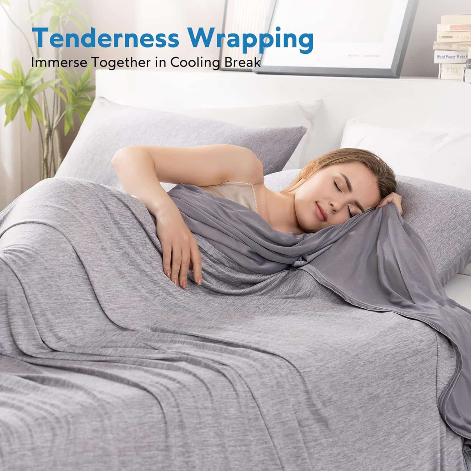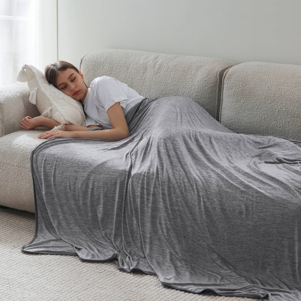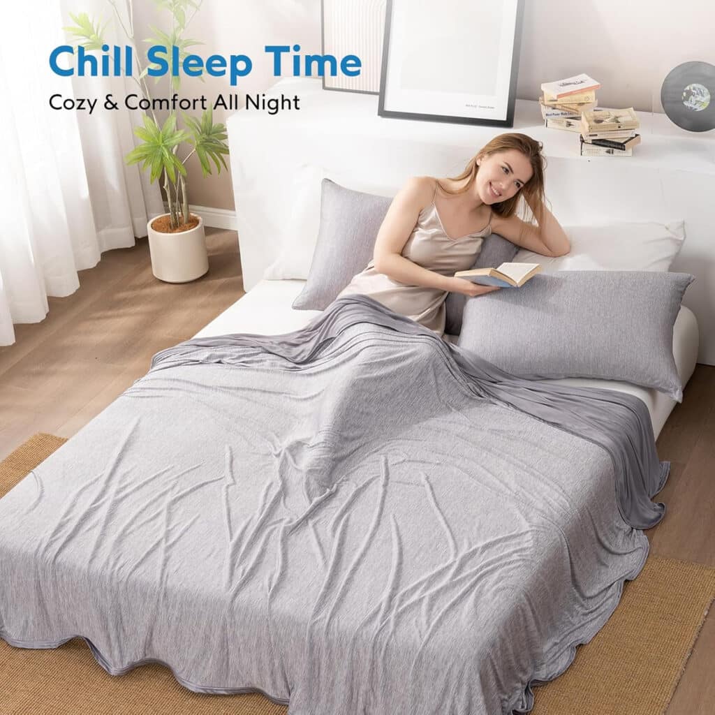 Bamboo viscose is naturally breathable, moisture-wicking, and temperature-regulating. It promotes excellent airflow to prevent heat buildup, feels soft and luxurious against skin, and is eco-friendly. These properties make it the perfect material for a cooling blanket.