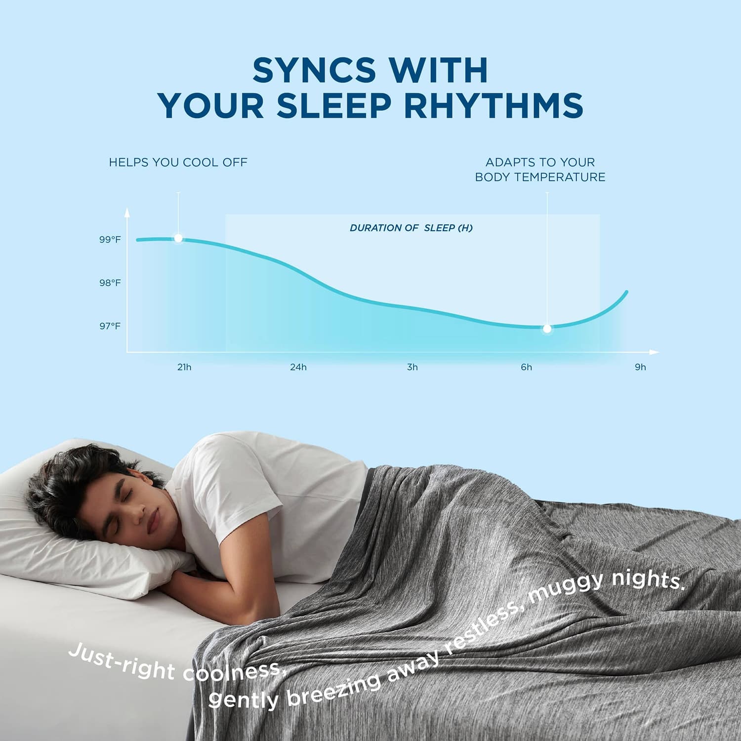 The AeroSnugi Summer Blanket uses advanced FreezeCore™ technology that actively regulates your body temperature by absorbing excess heat and dispersing it away from your body. This creates an instant cooling sensation that lasts throughout the night.
