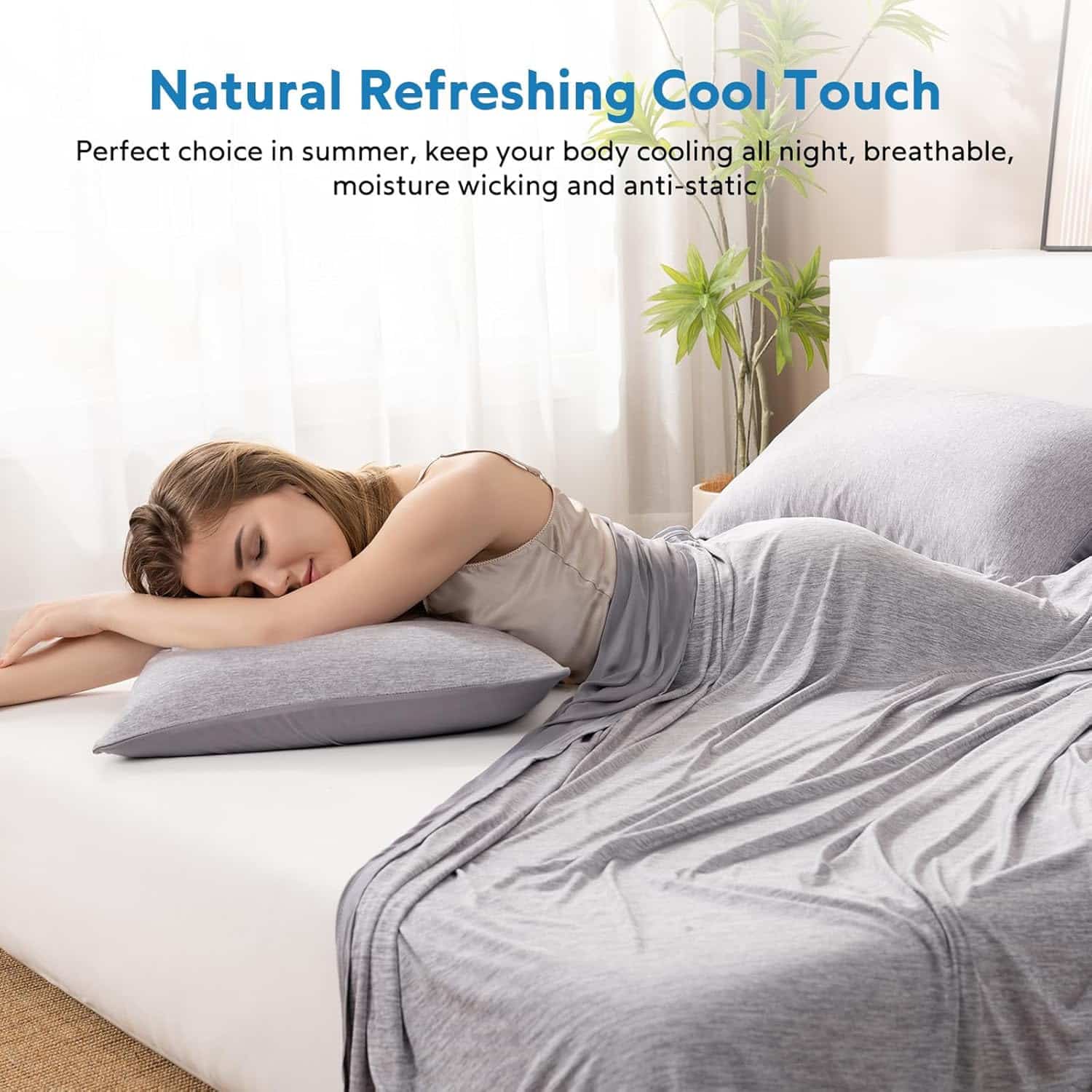 The premium bamboo viscose fabric naturally promotes airflow and prevents heat buildup. This breathable material keeps you cool and comfortable throughout the night, making it ideal for hot sleepers and warm summer months.