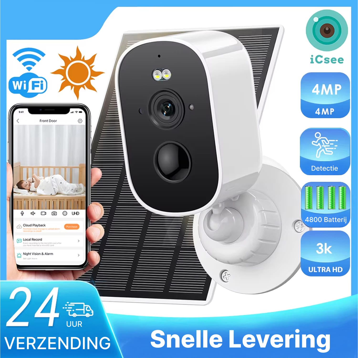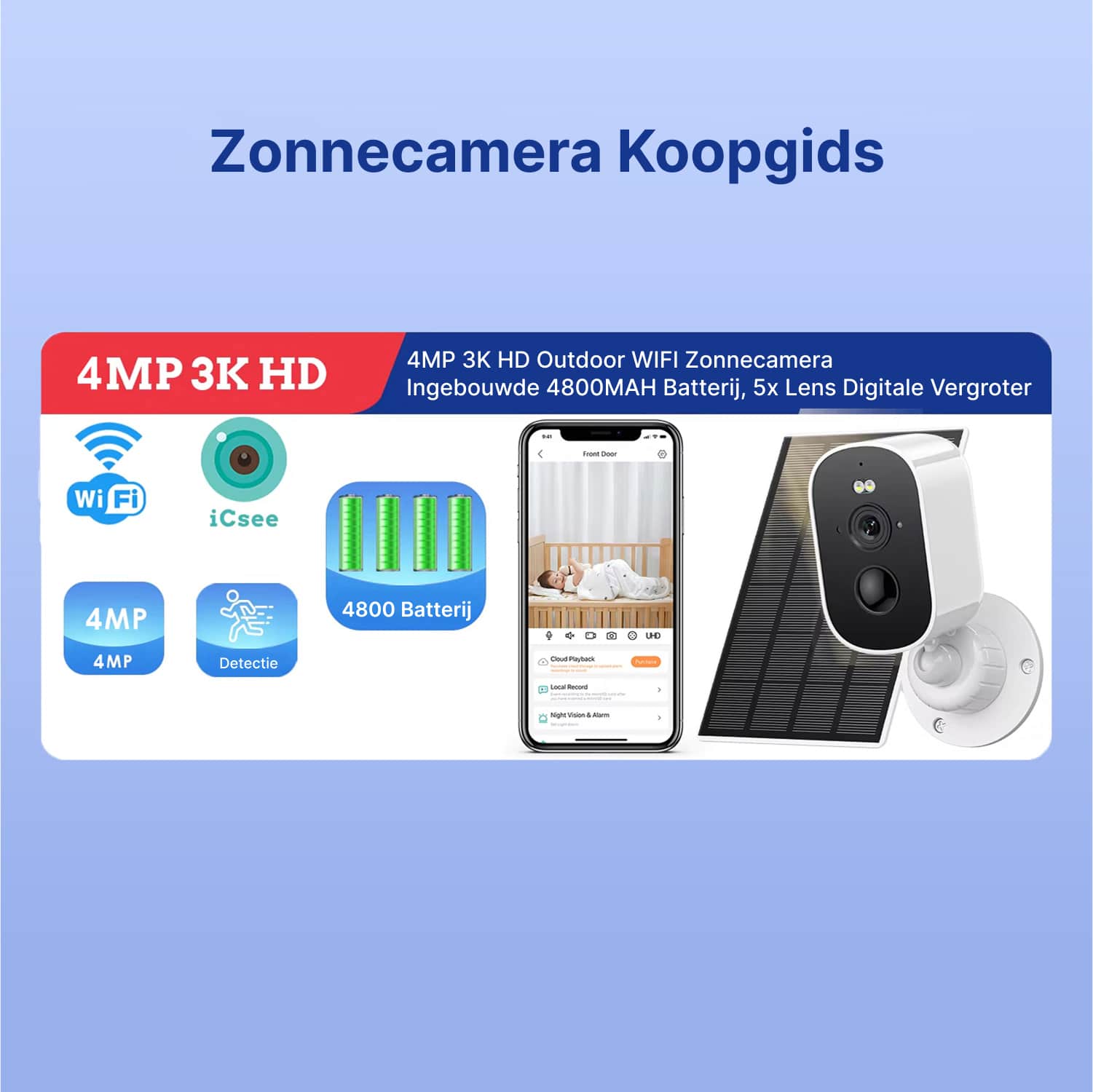 Ja, het efficiënte zonnepaneel laadt de batterij ook bij bewolkt weer op. De krachtige 4800mAh batterij zorgt voor tot 365 dagen werking, zelfs tijdens langere periodes zonder direct zonlicht in Nederlandse winters.