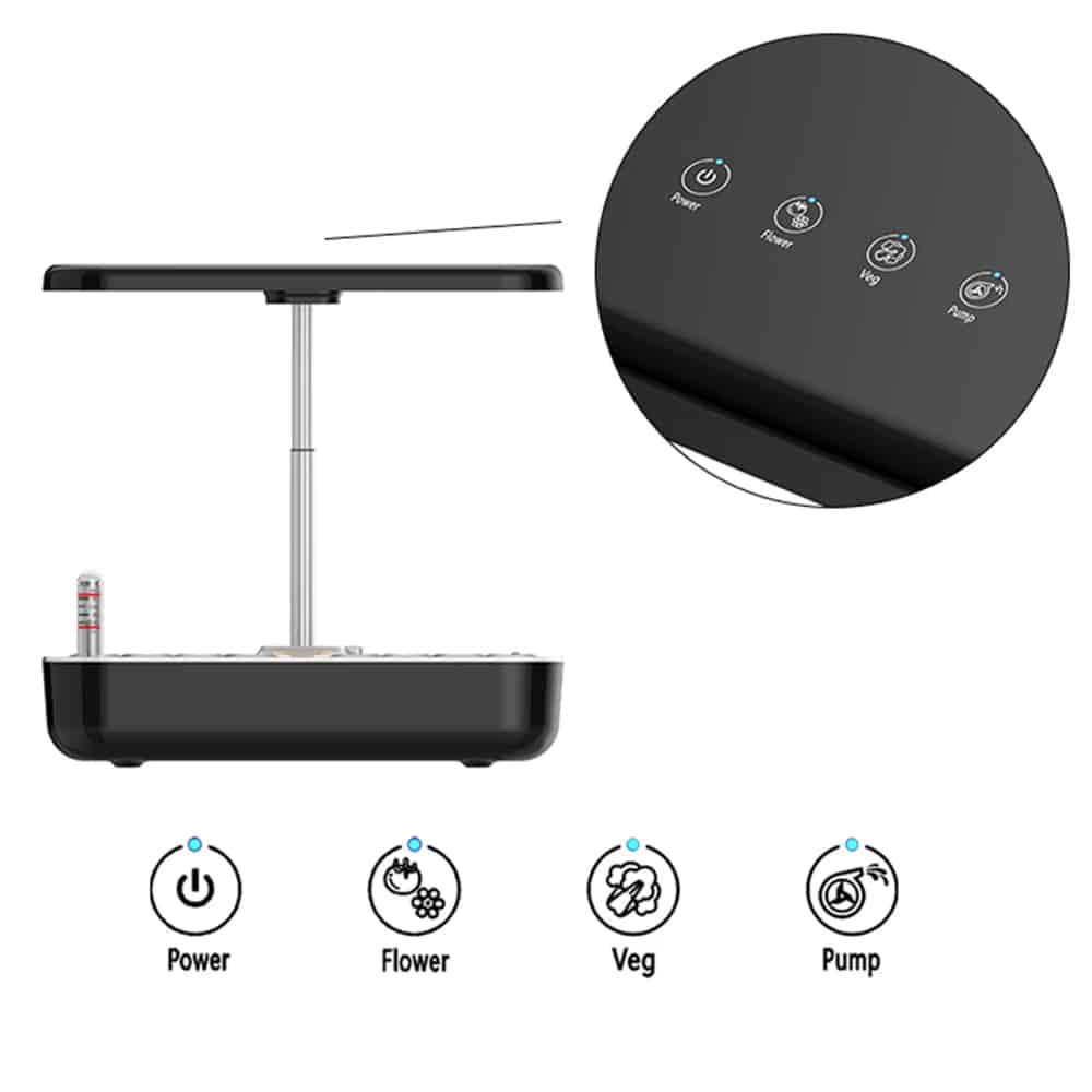 The system accommodates up to 12 plants simultaneously, providing ample space for a diverse indoor garden with optimal growing conditions.