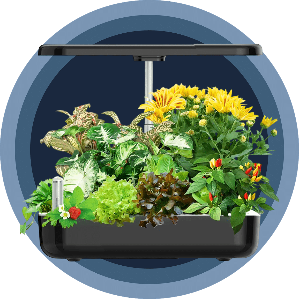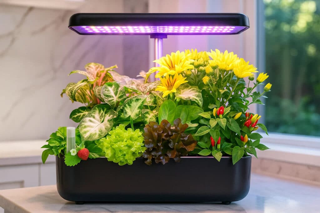 Perfect for herbs, leafy greens, cherry tomatoes, peppers, and small flowering plants that thrive in hydroponic environments with controlled nutrients.