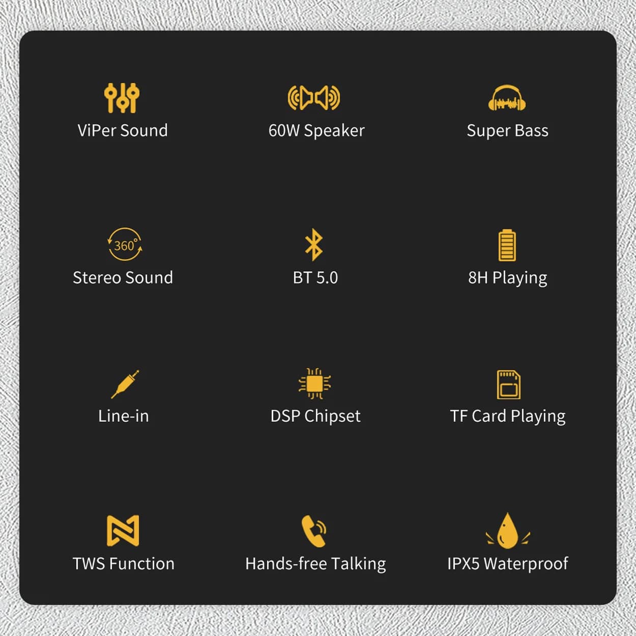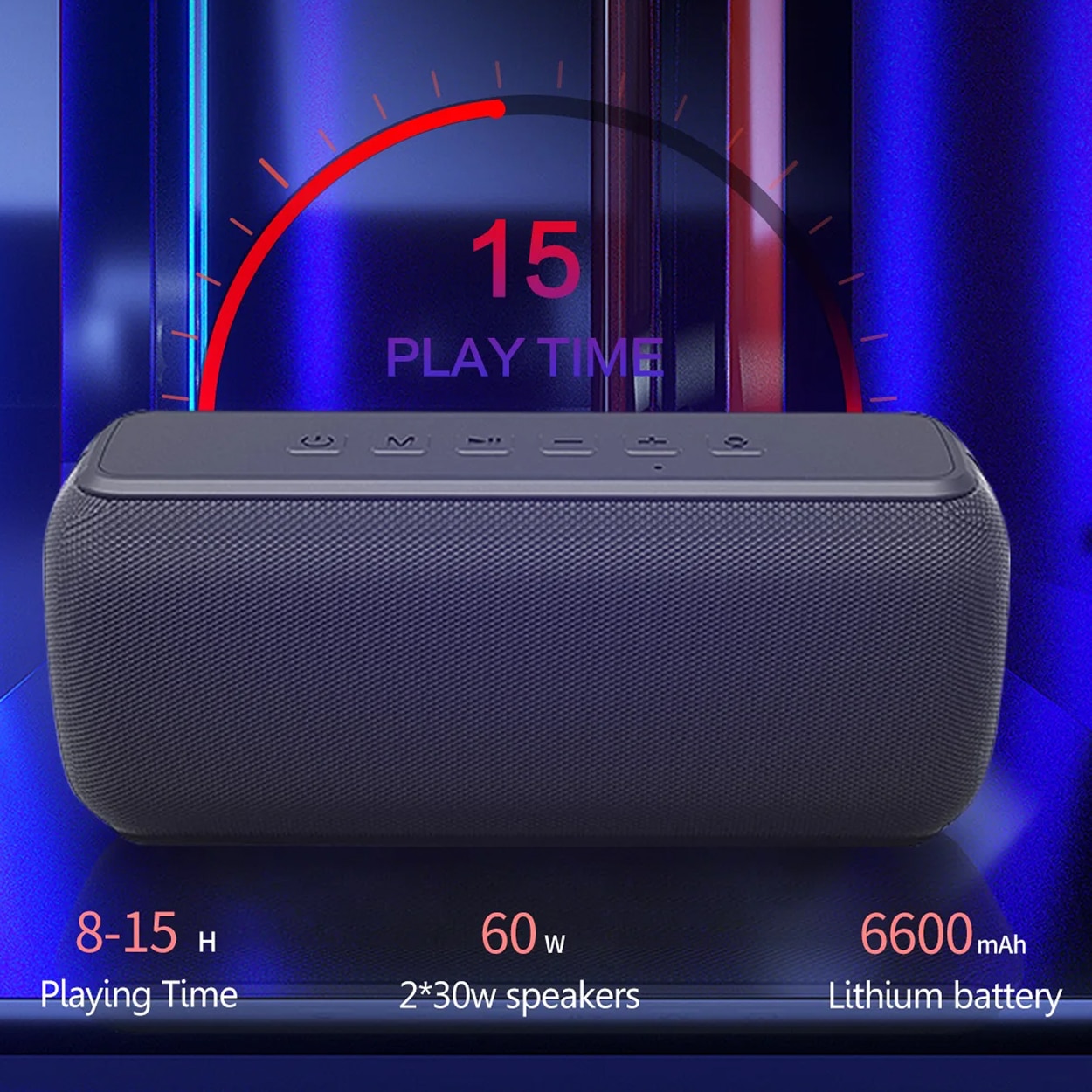 Equipped with dual full-range speakers and visual low-frequency radiators, the Audekox Outdoor Bluetooth Speaker produces 60W of pure audio power, creating deep bass and crisp treble for an immersive listening experience.