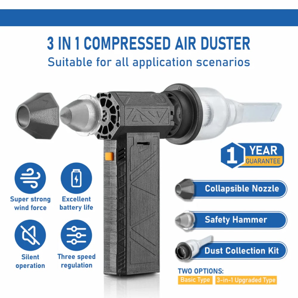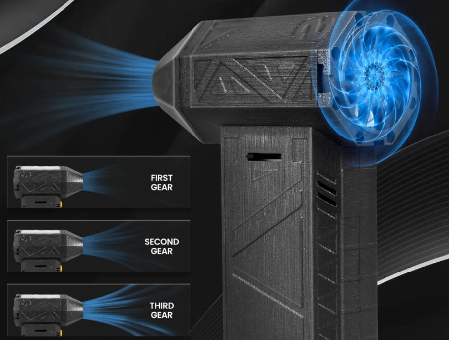 Three-speed control system allows precise adjustment of airflow, making it suitable for various cleaning tasks from delicate surfaces to tough drying jobs.