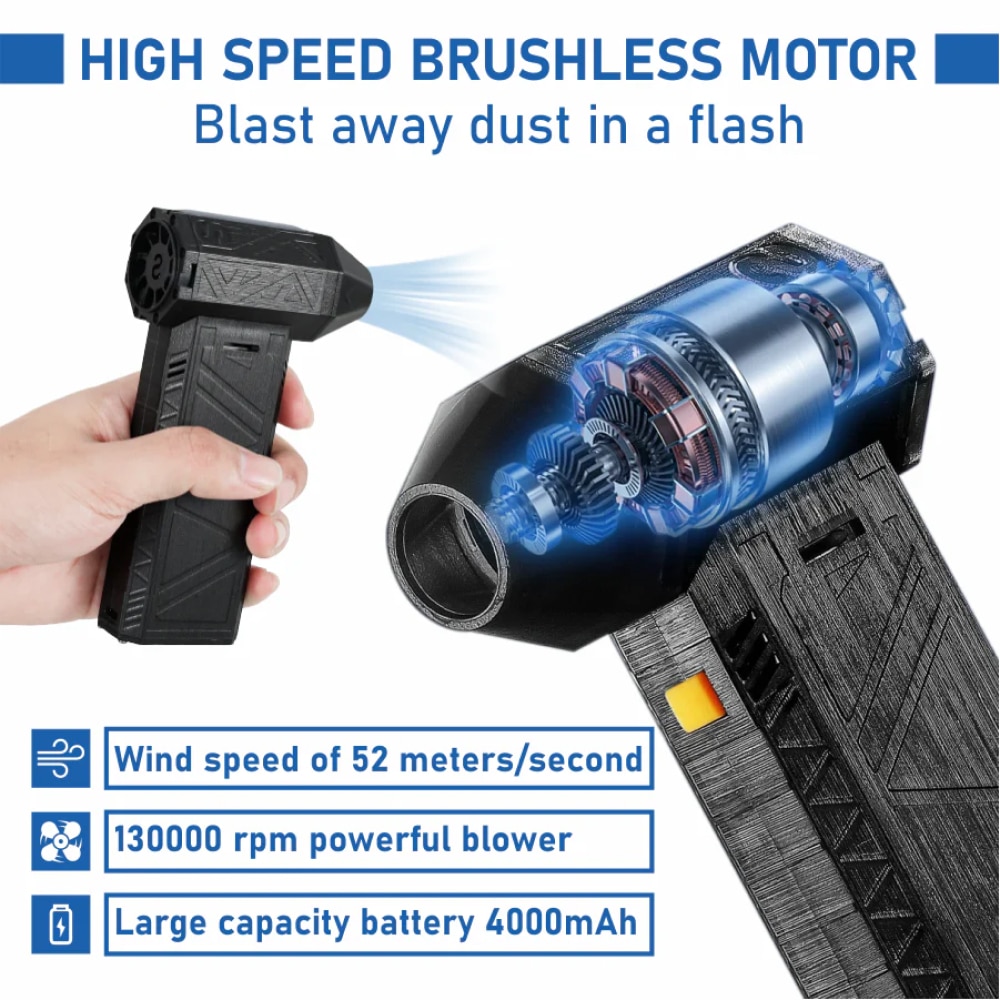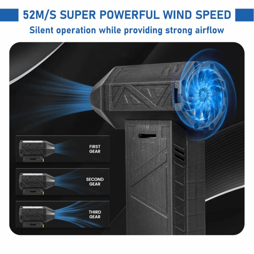 Advanced brushless motor technology generates an impressive 52 meters/second wind speed, making quick work of any drying task.