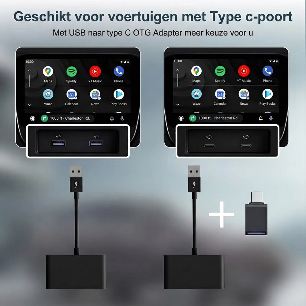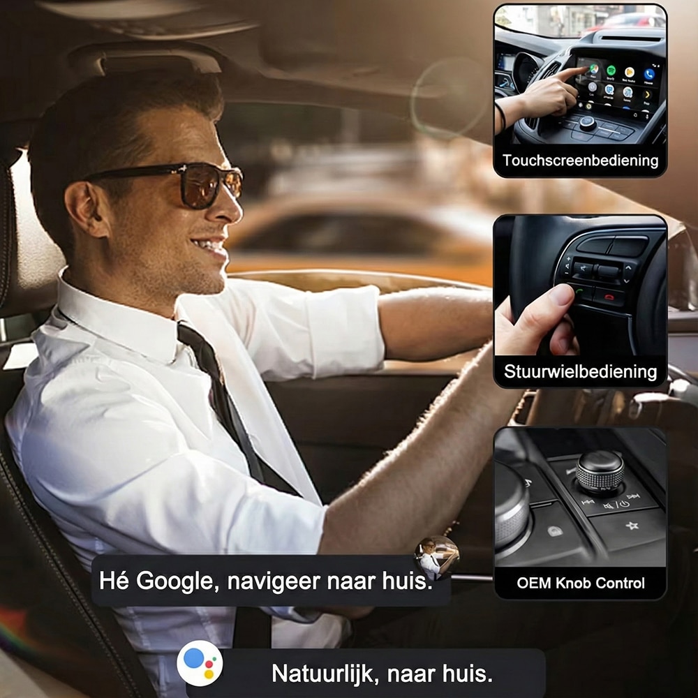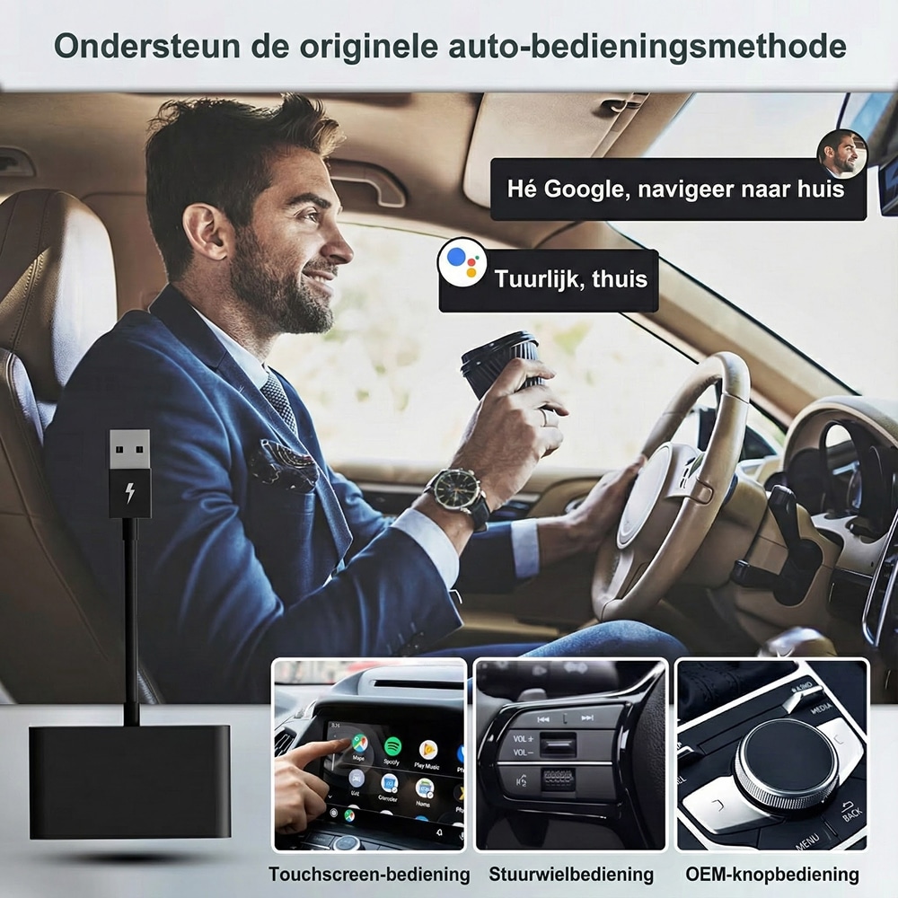 Nee, CabieLink werkt volledig samen met uw bestaande infotainmentsysteem zonder aanpassingen. Het voegt simpelweg draadloze functionaliteit toe aan uw fabrieks-Android Auto zonder originele functies te beïnvloeden of te vervangen.