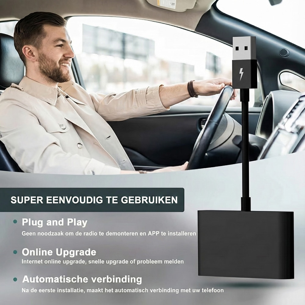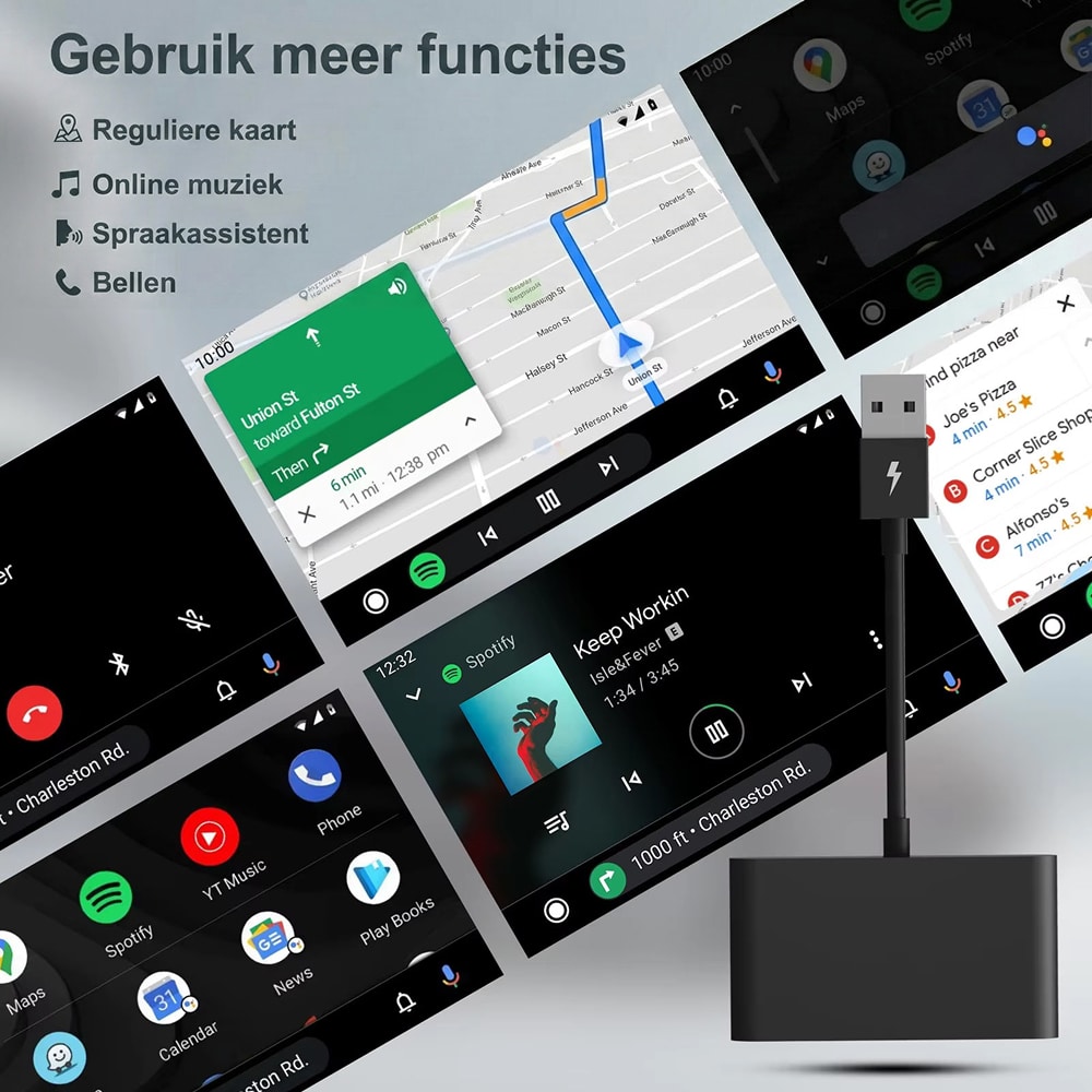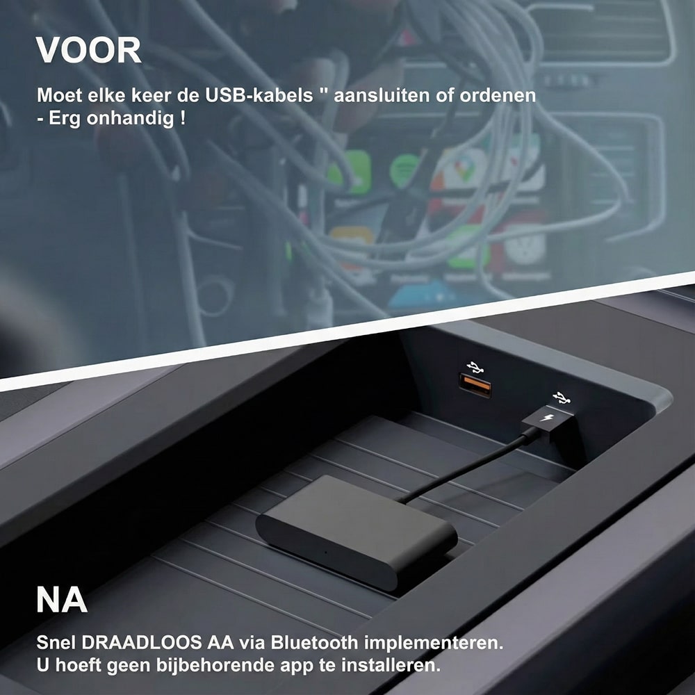 De installatie duurt minder dan 60 seconden. Sluit gewoon de adapter aan op de USB-poort van uw auto, koppel uw telefoon via Bluetooth en WiFi, en u bent klaar om te genieten van draadloze Android Auto.