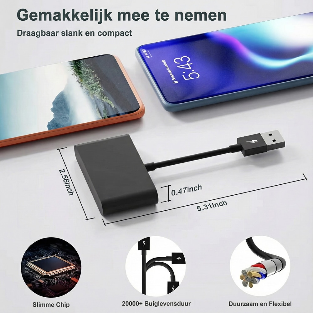 Nee, CabieLink is geoptimaliseerd voor energiezuinig gebruik. Hoewel draadloze verbindingen iets meer energie verbruiken dan bekabelde, blijft het batterijverbruik minimaal en vergelijkbaar met normaal gebruik van Android Auto.
