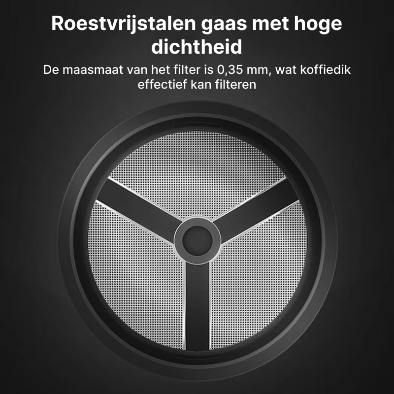 Met een hoogwaardige roestvrijstalen mesh filter van 0.35mm zorgt de CaféCruso ervoor dat geen koffiedik in uw kopje terechtkomt. Deze precisiefiltering garandeert elke keer een gladde drankervaring.