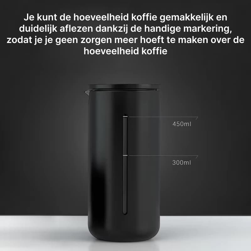 De duidelijk gemarkeerde 450ml capaciteit elimineert giswerk bij het zetten. Of u nu koffie voor één persoon maakt of deelt met vrienden, u weet altijd de perfecte hoeveelheid.