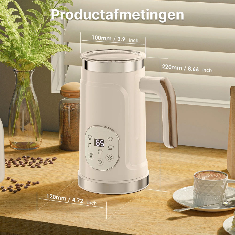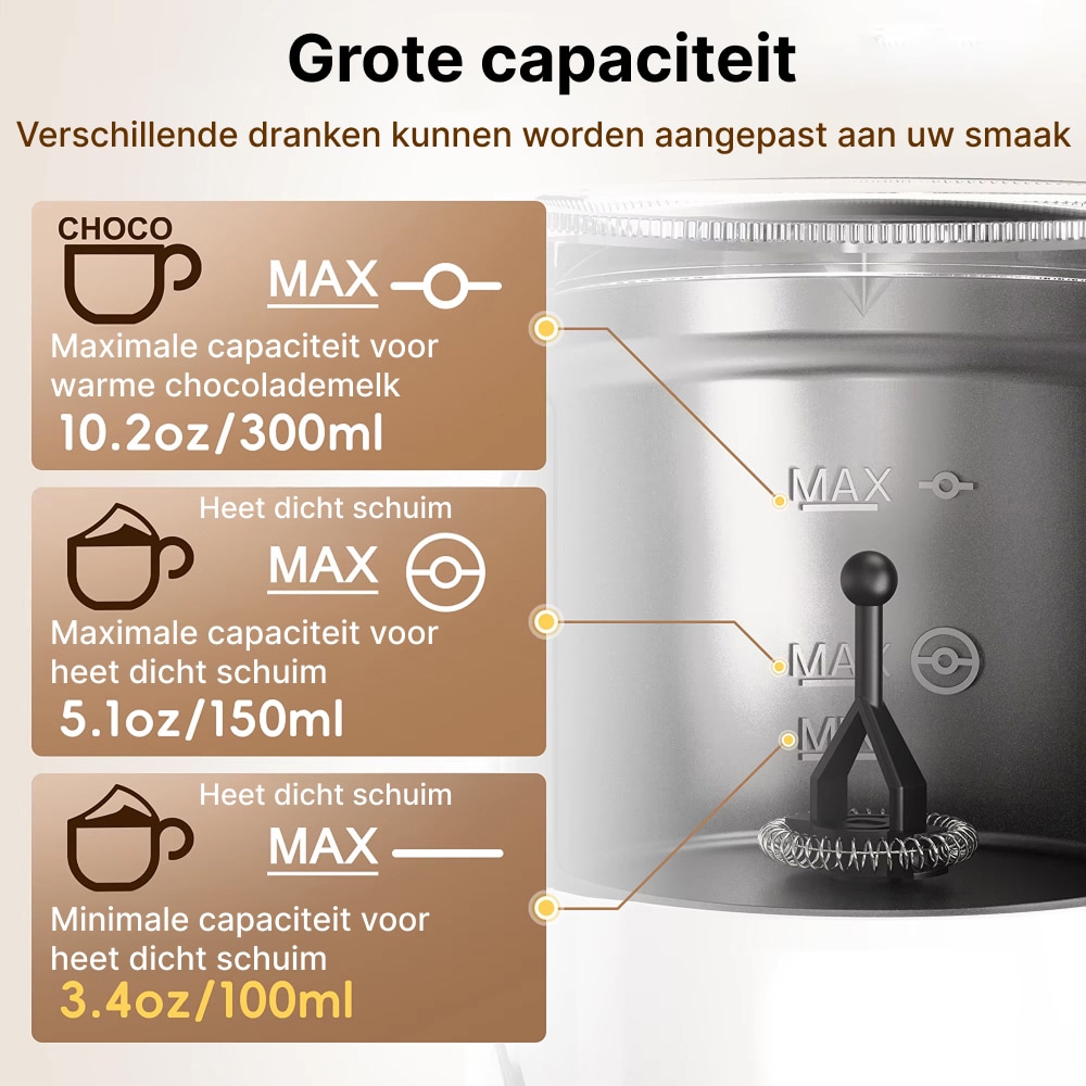 Ja, de ChokoMixy werkt uitstekend met plantaardige melkalternatieven. Kies varianten met hoger eiwitgehalte zoals barista-editie havermelk of sojamelk voor het beste schuimresultaat.