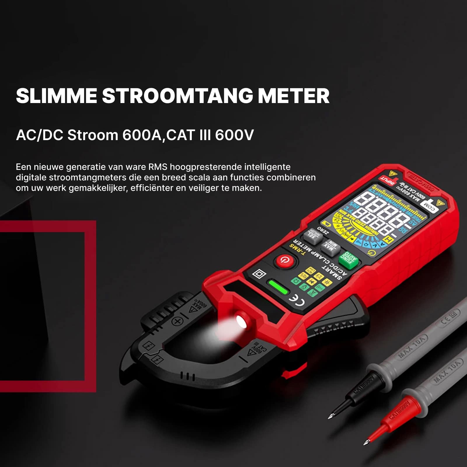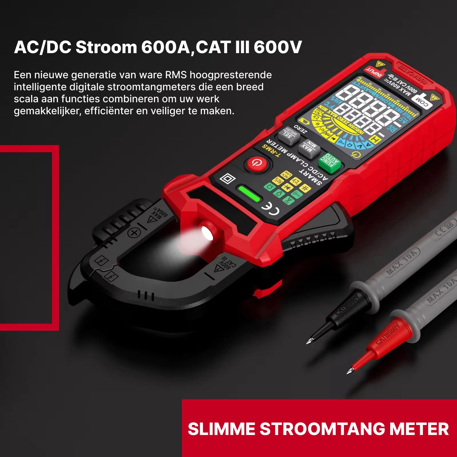 Absoluut. Met CAT III 600V certificering en industriële veiligheidsstandaarden zijn de ClamoTeky Stroomtangen geschikt voor professionele elektriciens en onderhoudstechnici.