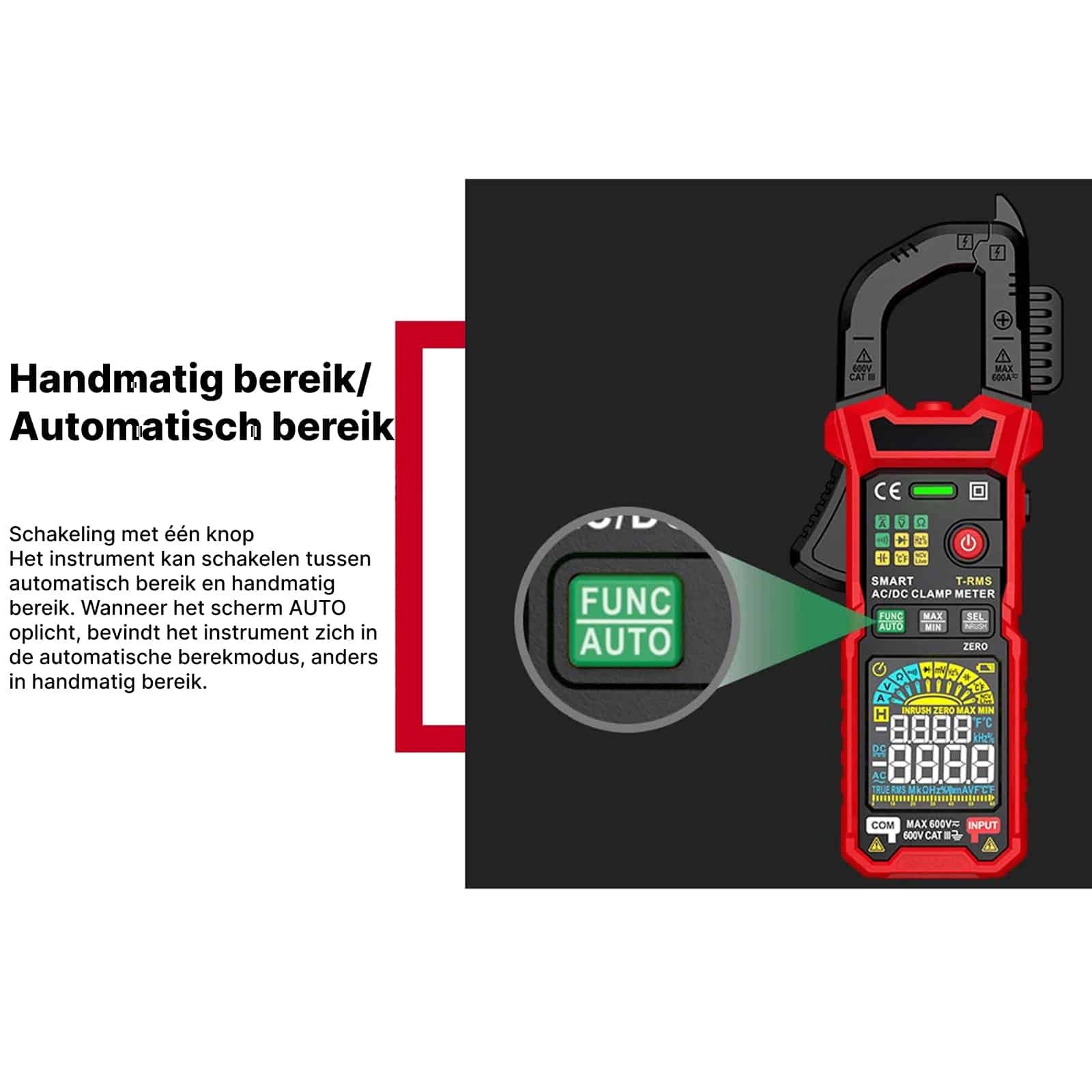 Ja, de ClamoTeky Stroomtangen meten beide. Het bereik is 60A en 600A voor zowel wisselstroom als gelijkstroom, met True RMS voor nauwkeurige AC metingen.