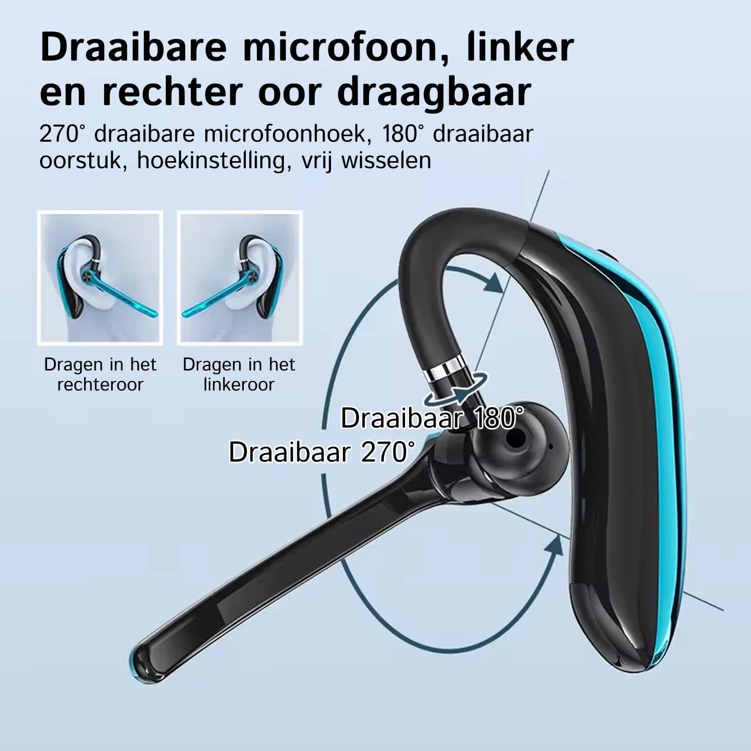 Zeker! Het innovatieve design van de CleaWavi headset ondersteunt zowel links- als rechtsoor dragen, aangepast aan uw persoonlijke voorkeur en comfort.