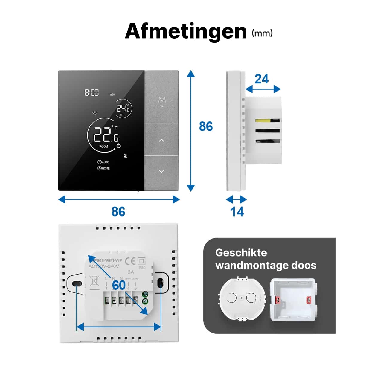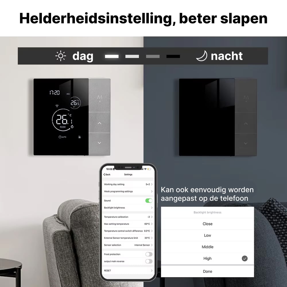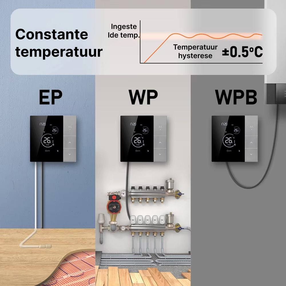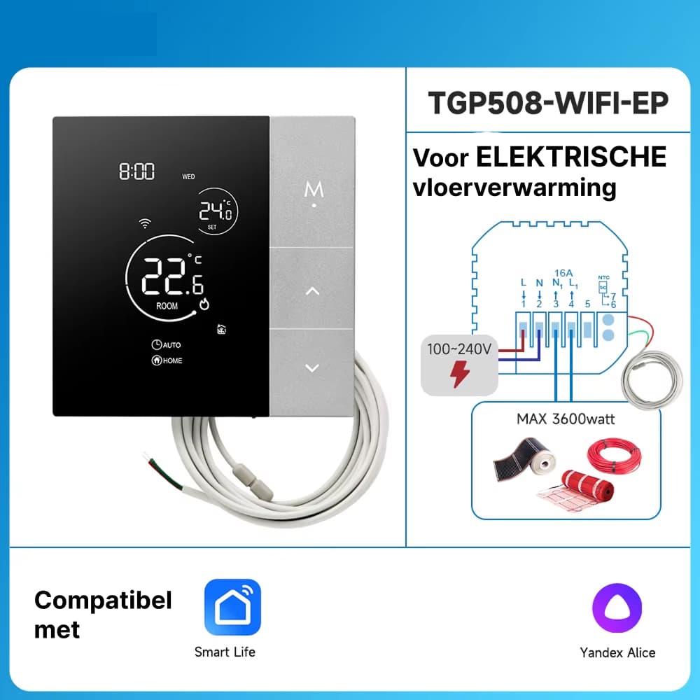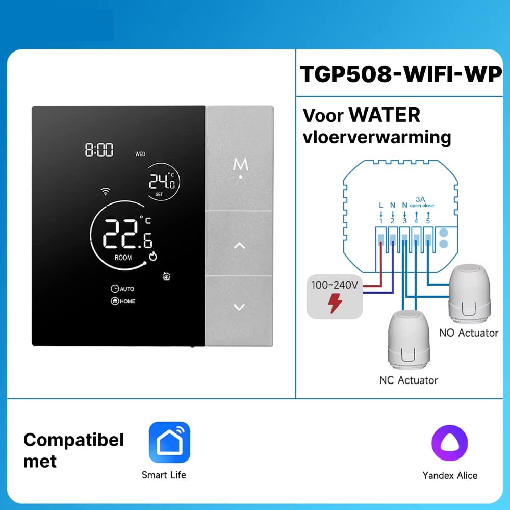 Nee, installatie is verrassend eenvoudig en duurt slechts enkele minuten. De intuïtieve Tuya Smart app begeleidt u door het proces, en de thermostaat integreert naadloos met uw bestaande verwarmingssysteem zonder professionele hulp.