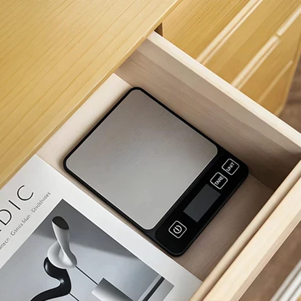 Met slechts 1,8 centimeter dik past deze weegschaal in elke keukenla. Neem minimale ruimte in beslag terwijl je maximale functionaliteit behoudt voor al je weeg- en meetbehoeften.