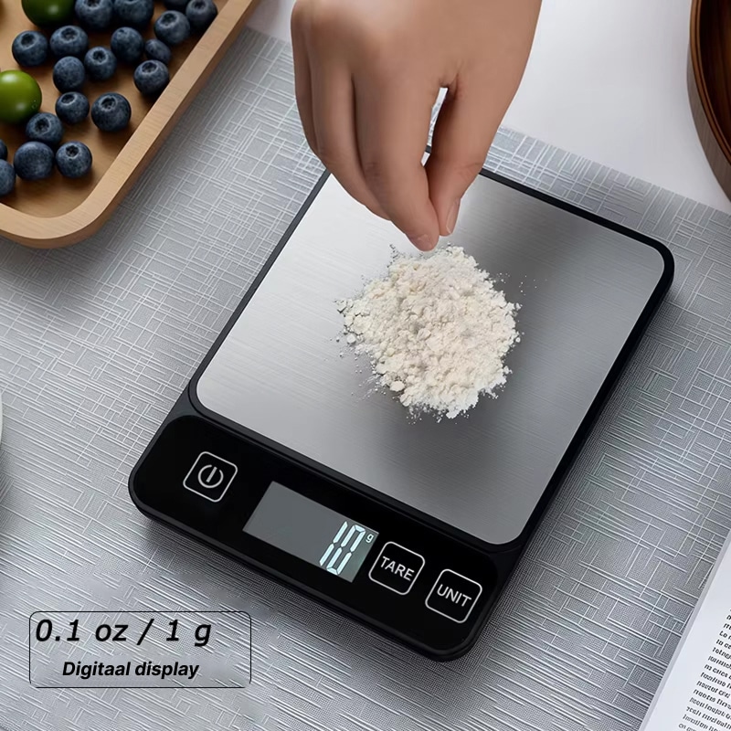Gebruik de Cookogy Keukenweegschaal dagelijks voor meal prep. Compact, makkelijk schoon te maken en de batterij gaat eindeloos mee. Beste aankoop voor mijn keuken!