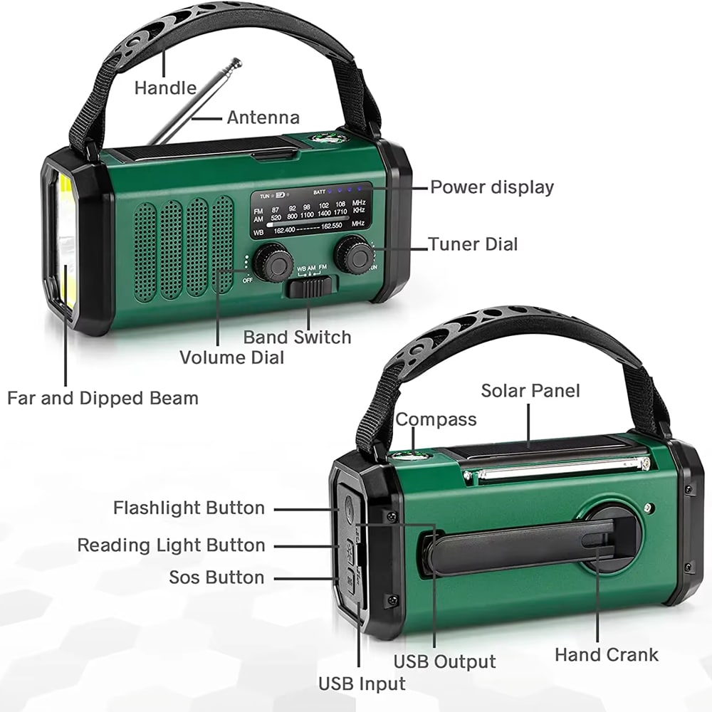 Just one minute of hand cranking provides sufficient power for emergency radio operation and torch use when needed.