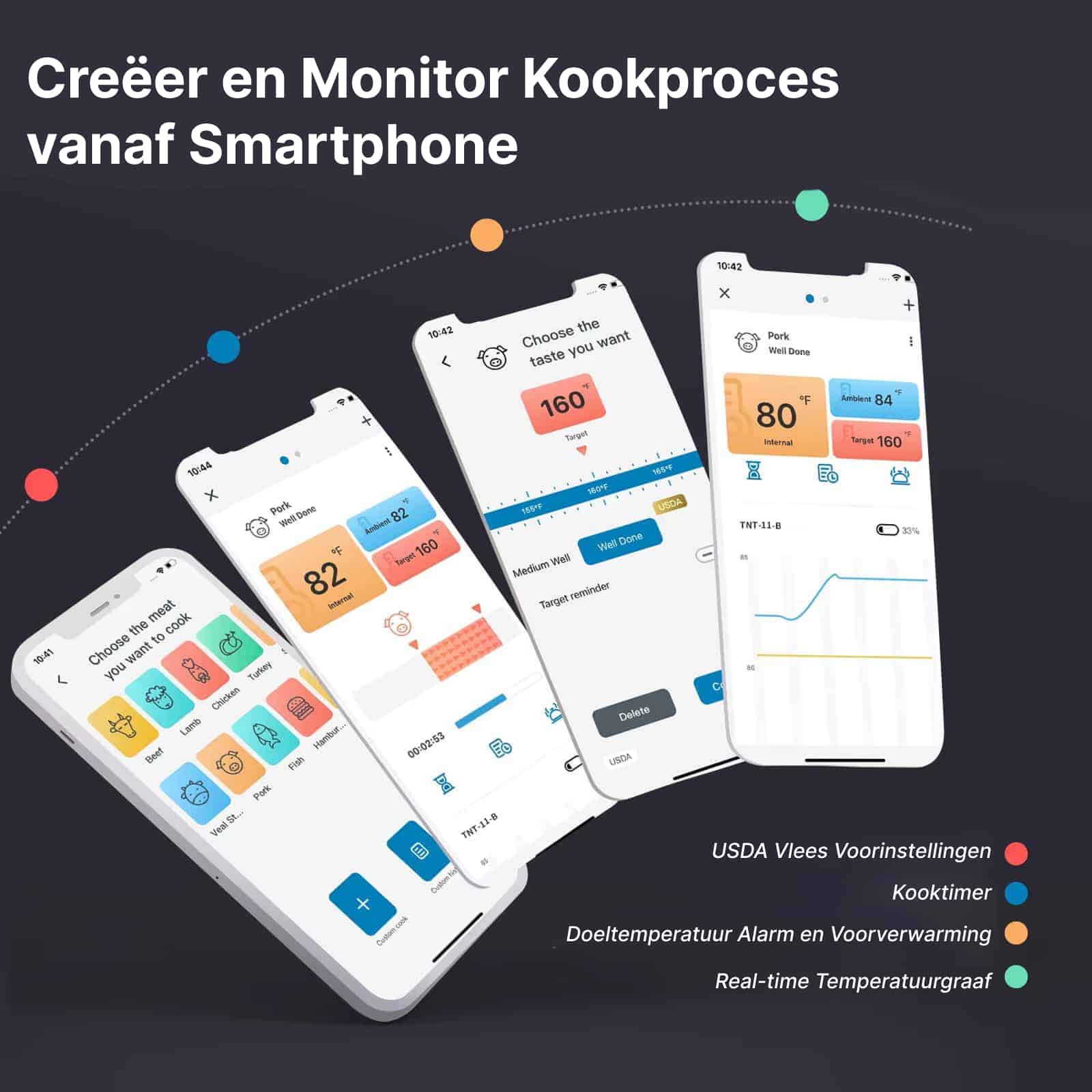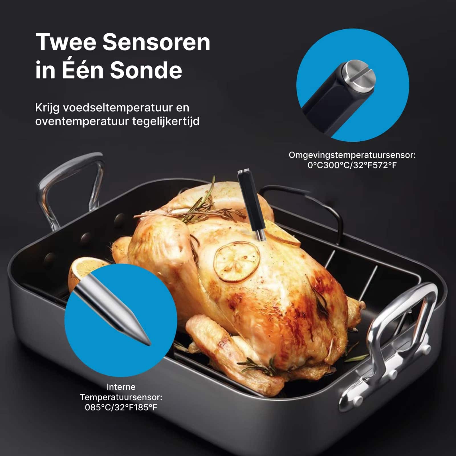 Ja, u kunt tot vier verschillende sondes tegelijkertijd aansluiten. Ideaal voor het bereiden van meerdere gerechten of verschillende stukken vlees tijdens één kooksessie.