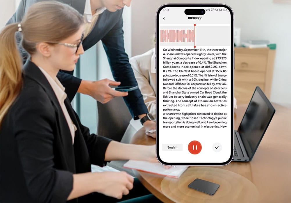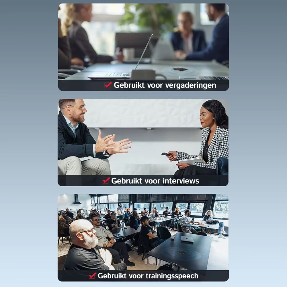 De EchoScrib AI Voice Recorder biedt tot 15 uur continue opname op één lading, perfect voor gebruik gedurende de hele dag.