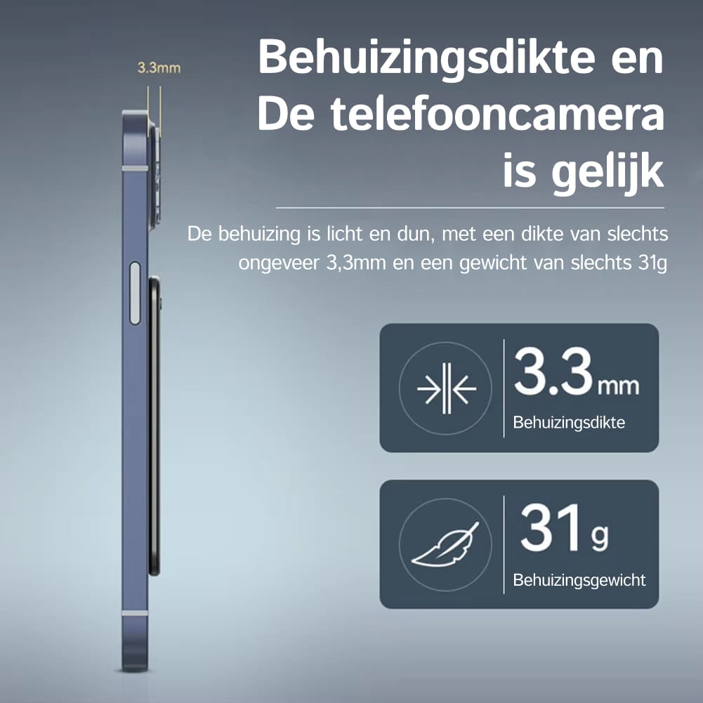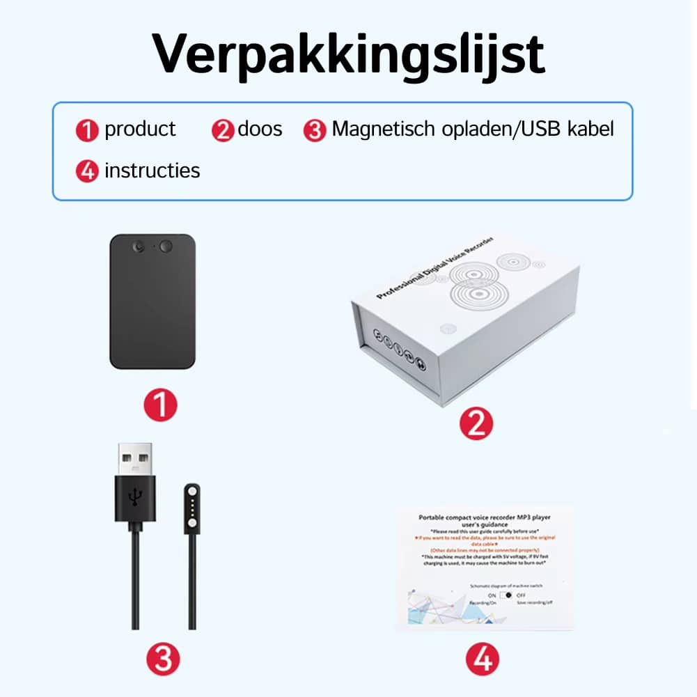 De magnetische bevestiging laat je de recorder eenvoudig bevestigen aan metalen oppervlakken voor handsfree gebruik.