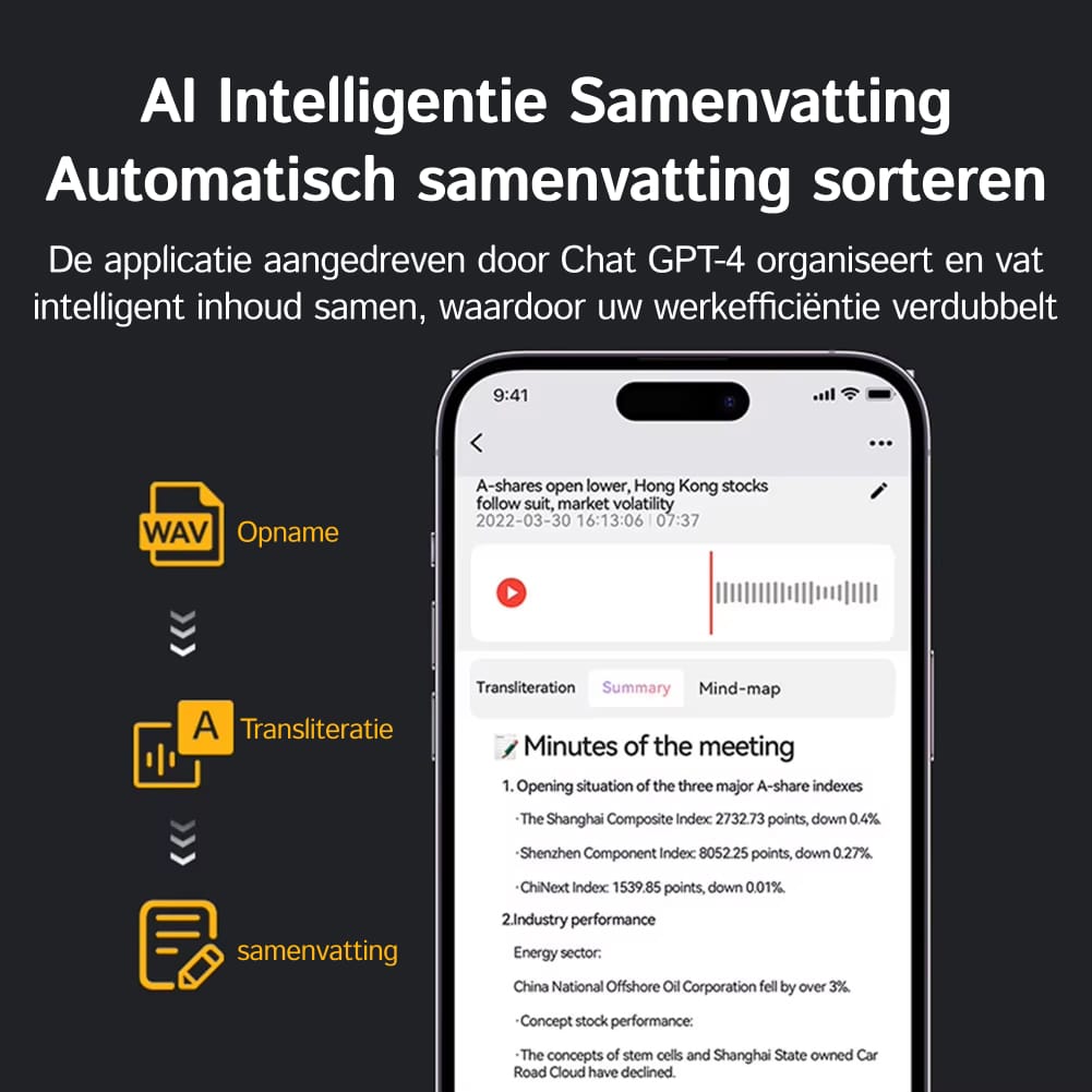 Ja, de EchoScrib kan standalone worden gebruikt, maar de AIREC-APP biedt extra functies zoals real-time vertalingen.