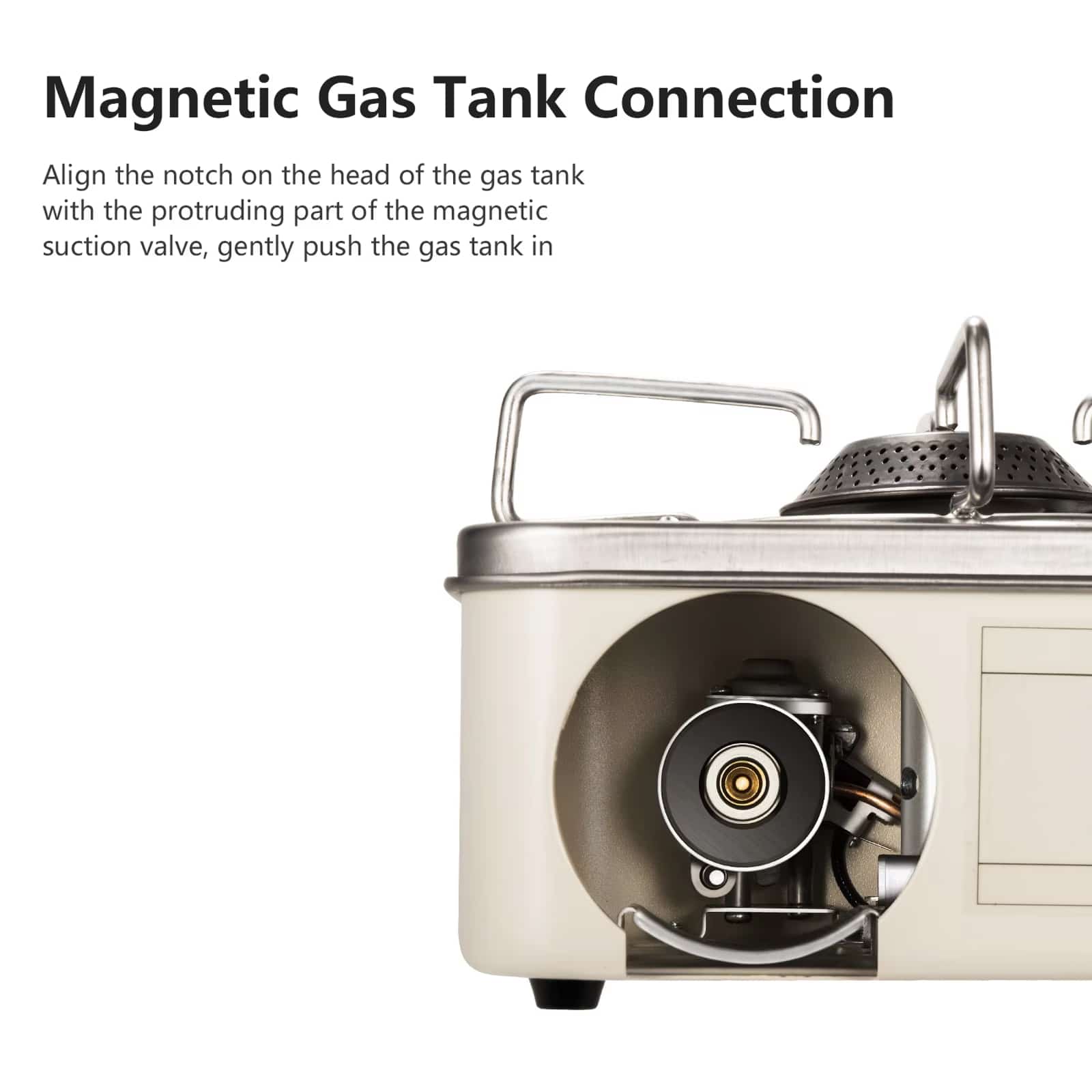 Safety is paramount with the magnetic gas tank connection and built-in overvoltage protection. Cook with confidence knowing your stove is secure.