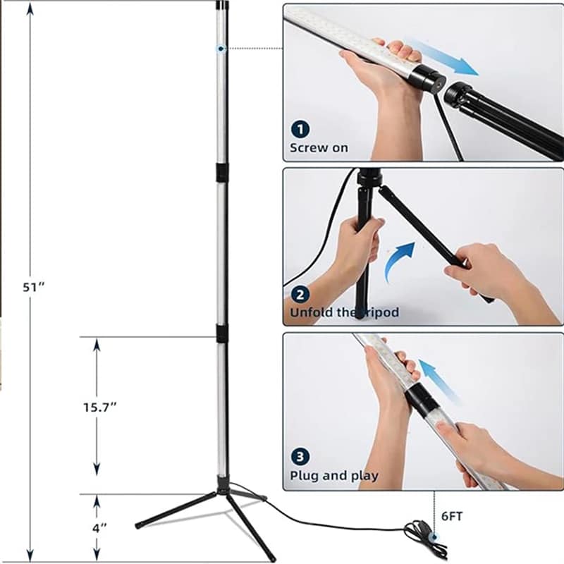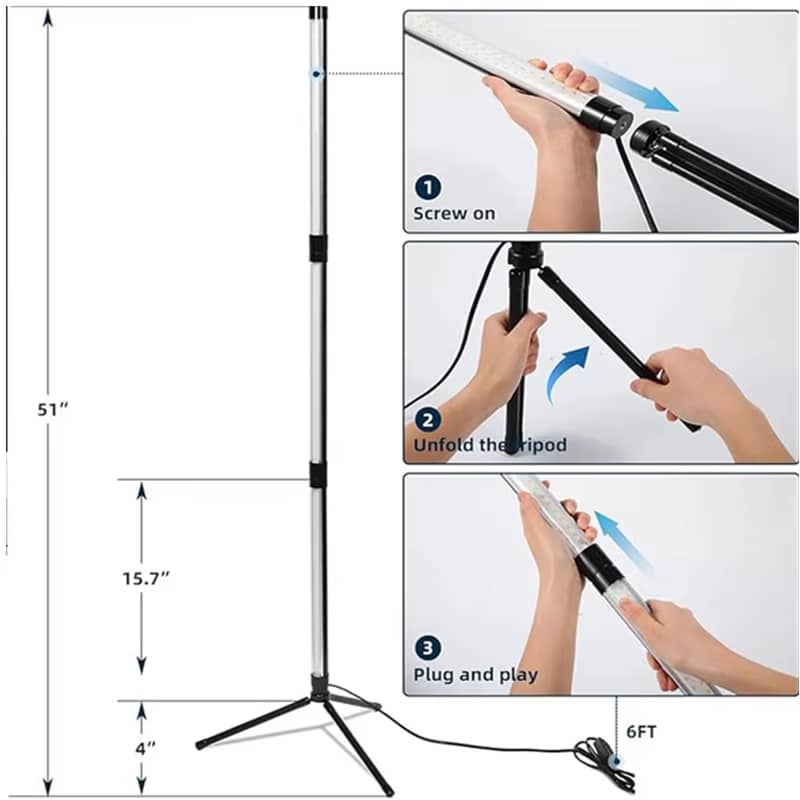 Installation takes just minutes. Simply connect the tubes together, attach to the included tripod stand, plug in the adapter, and turn on. No tools or technical knowledge required for setup.