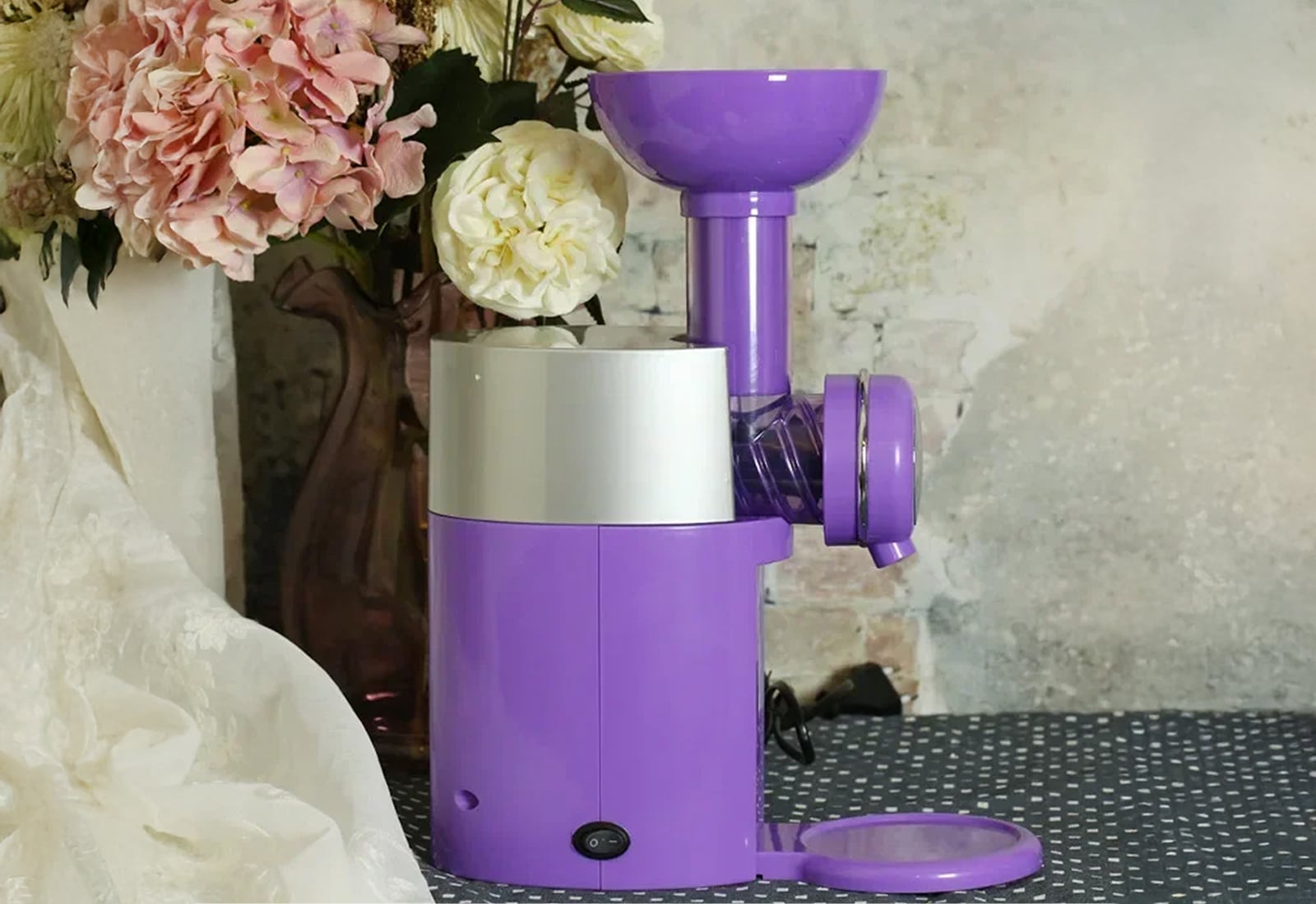The machine processes fruit continuously as you feed it through. The 4.3L hopper capacity allows you to make multiple servings, with output capacity of 16-20 liters per hour.