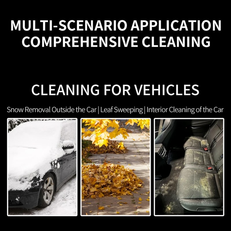 Absolutely! The dual blow-vacuum functionality with multiple nozzle attachments makes it perfect for clearing snow externally and vacuuming dust, crumbs, and debris from interior surfaces with equal effectiveness.