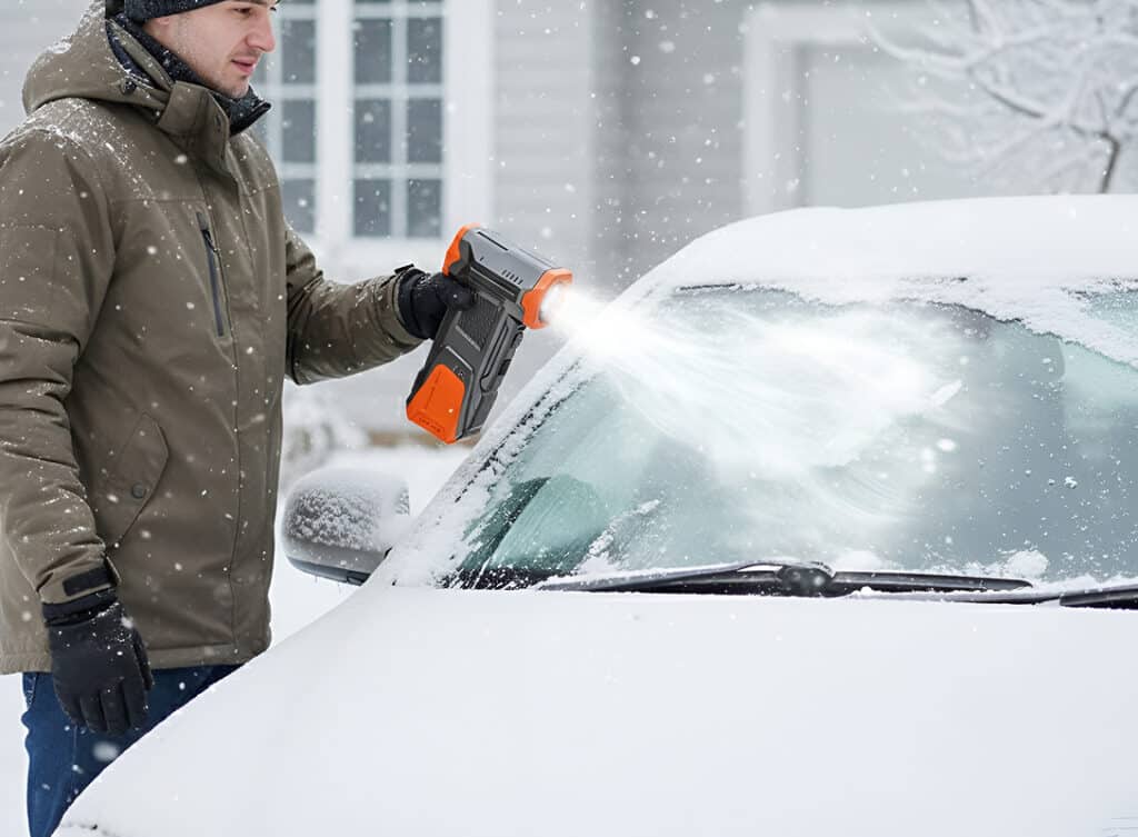 Yes! The 130,000 RPM motor generates 350G pressure, powerful enough to blast through several inches of packed snow and ice on windshields, roofs, and mirrors in seconds.