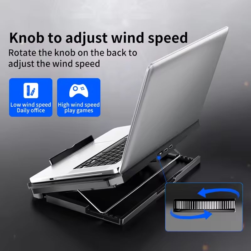 Yes, the adjustable wind speed knob allows you to customise cooling intensity based on your laptop's temperature and usage requirements.