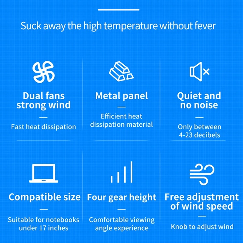 Very stable thanks to the anti-slip baffle system that prevents sliding and provides secure positioning for laptops during use.