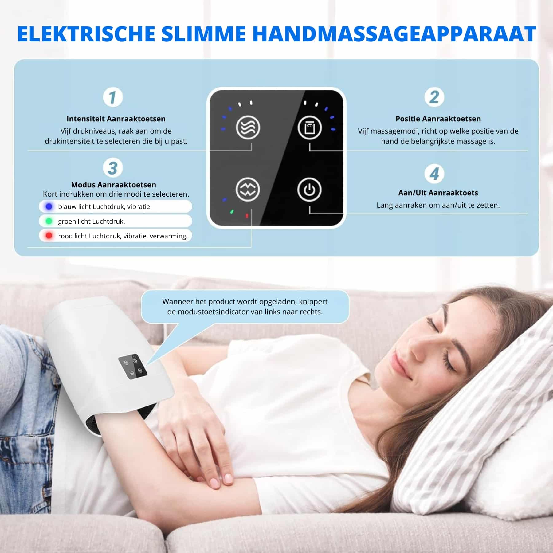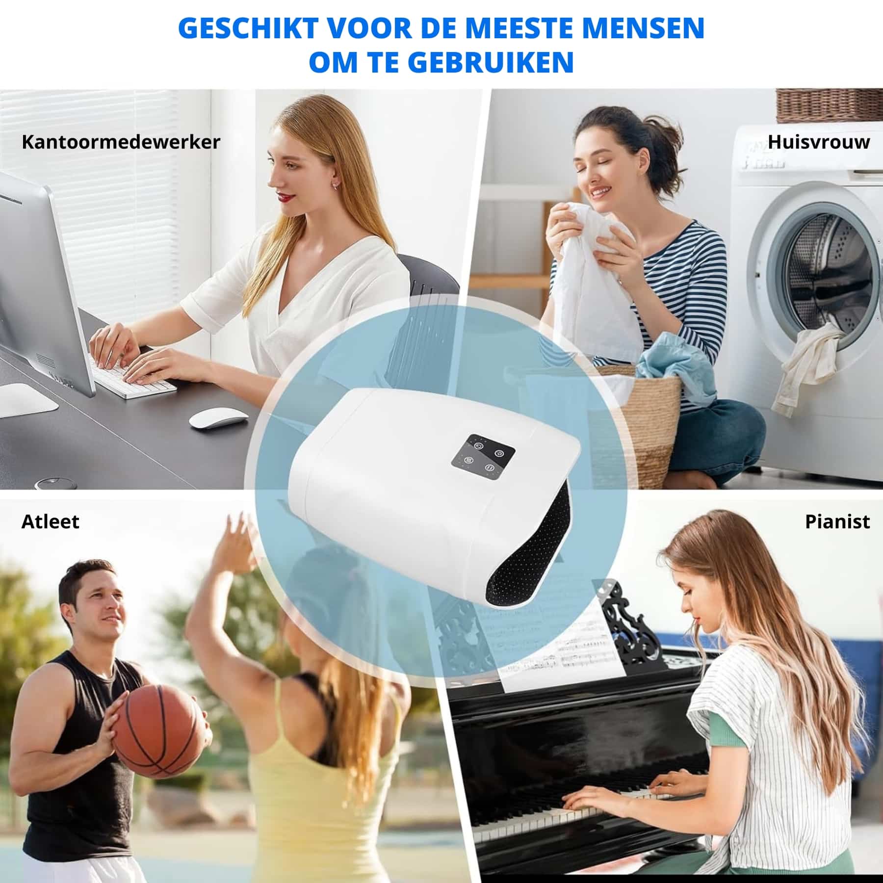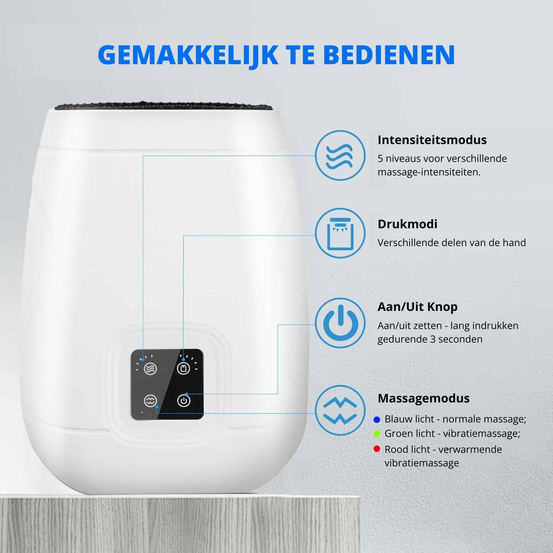 Ja, u kunt eenvoudig schakelen tussen de 5 intensiteitsniveaus tijdens gebruik. Dit stelt u in staat de druk aan te passen aan uw comfort en de gevoeligheid van uw handen.