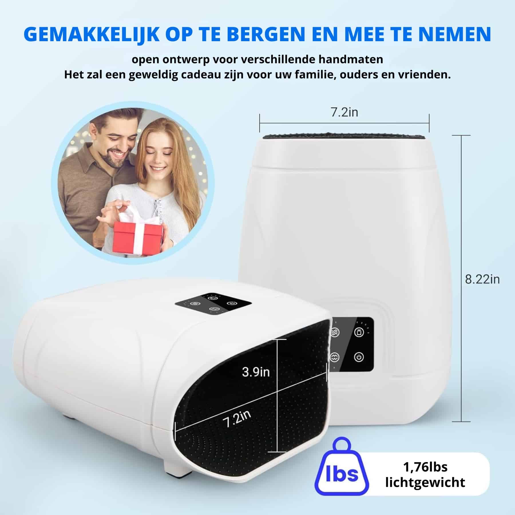 De HarmoZi past comfortabel bij de meeste handmaten dankzij het flexibele ontwerp. Het airbag systeem past zich aan verschillende handgroottes aan voor optimaal comfort en effectieve behandeling.