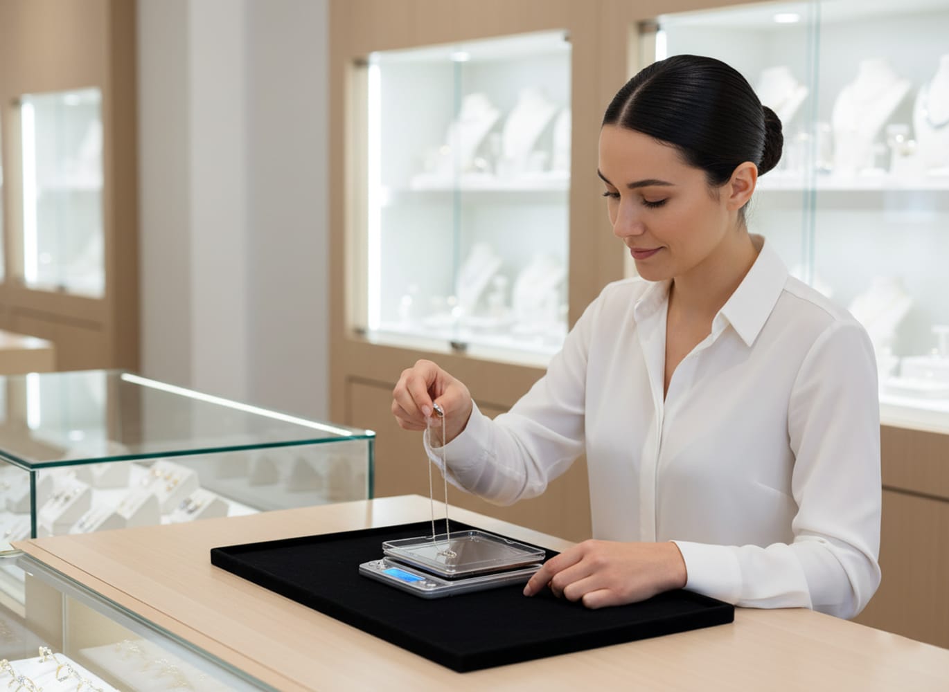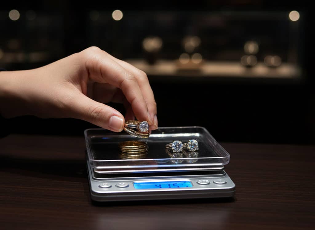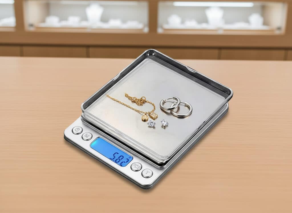 Absolutely. The non-magnetic stainless steel platform provides a smooth, stable surface perfect for delicate items. The dual tray system offers additional protection for precious pieces during weighing.