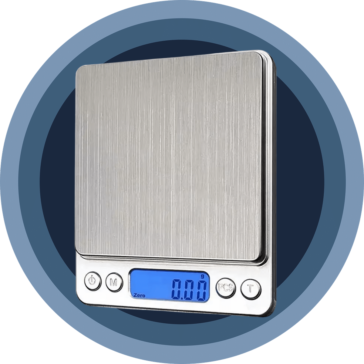 Place a container on the platform, press the tare button to reset to zero, then add your item. The display shows only the item's weight, excluding the container.