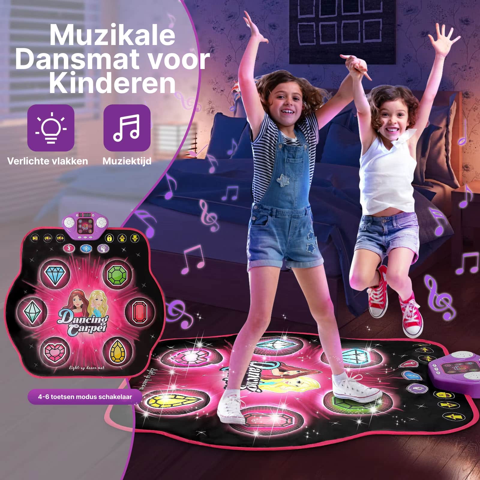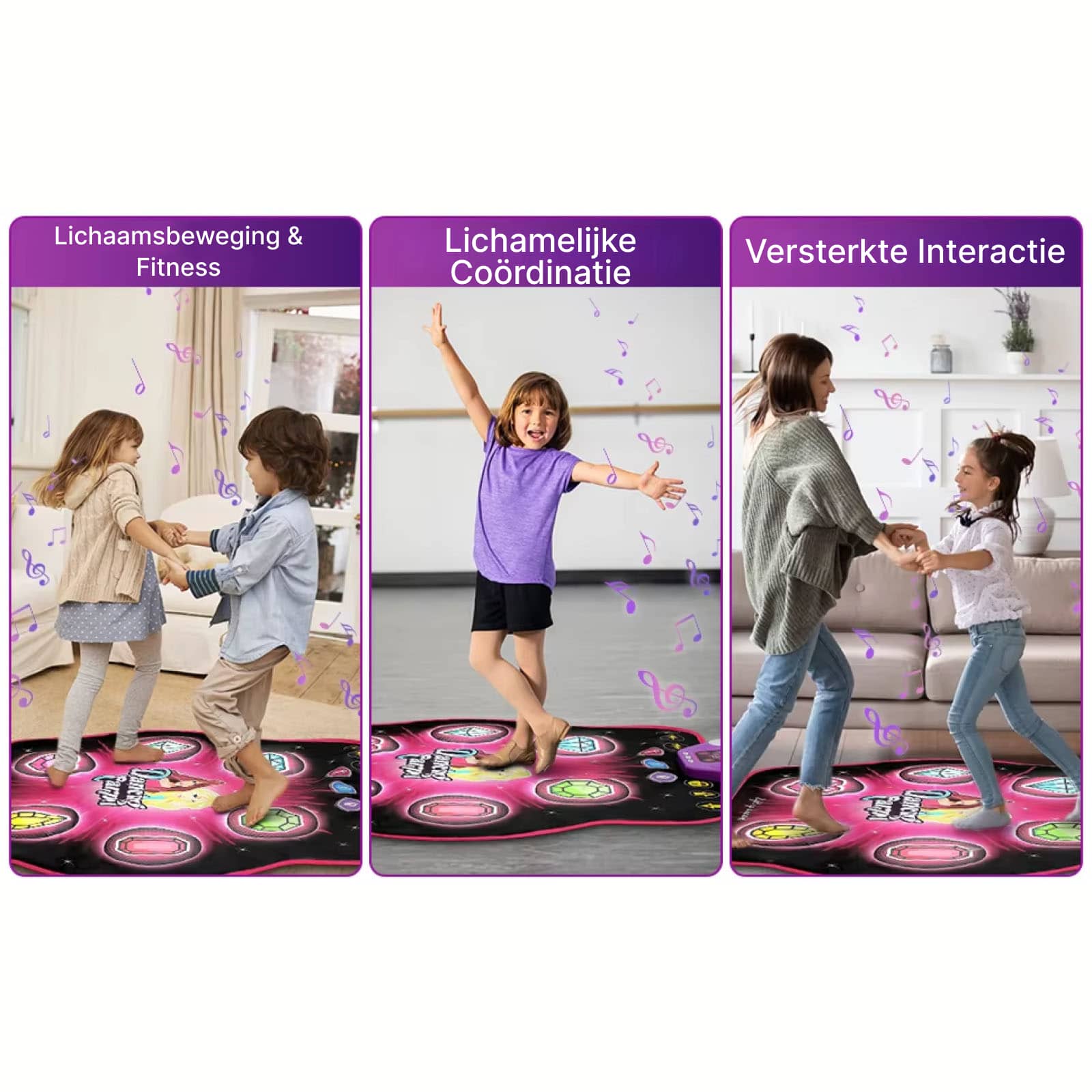 De dansmat is ontworpen voor individueel gebruik voor optimale veiligheid en prestaties. Kinderen kunnen echter om de beurt spelen, wat sociale interactie en gezonde competitie stimuleert binnen gezinsverband.