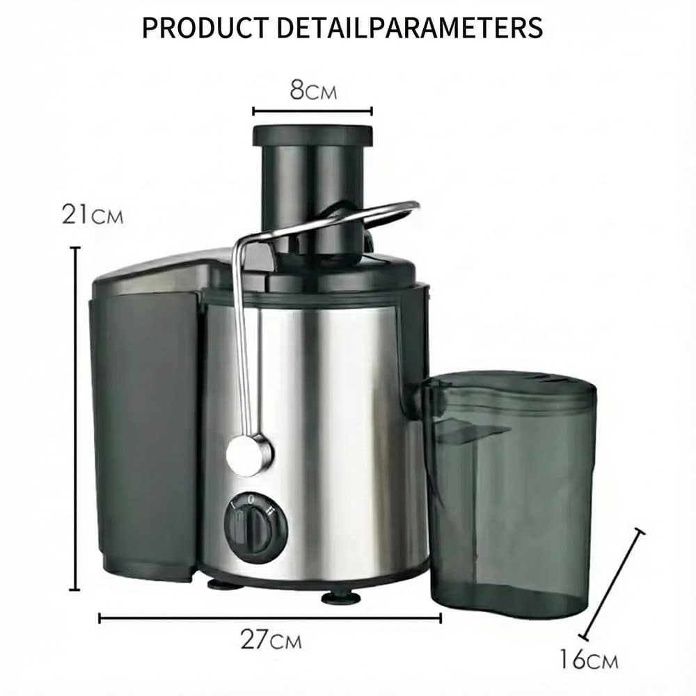 De Juicilox heeft een compact ontwerp met een voetafdruk van ongeveer 20cm x 30cm, waardoor het past op de meeste keukenbladen zonder overmatige ruimte in beslag te nemen. De verticale constructie maximaliseert efficiëntie terwijl het aanrechtruimte minimaliseert. Ondanks het compacte formaat biedt het volledige capaciteit met 1500ml pulpcontainer en 500ml sapbekertje voor gezinsgebruik.