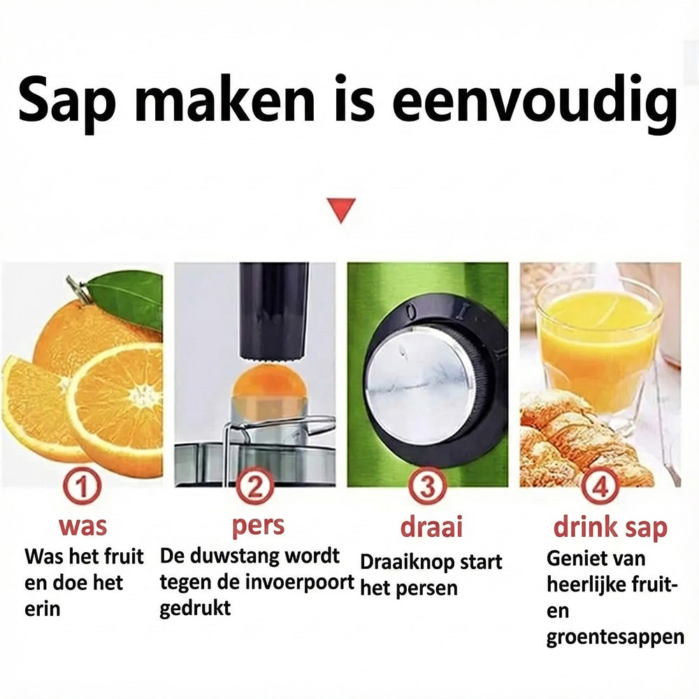 Snelheid één (lage snelheid) is ideaal voor zachter, sappiger fruit zoals citrusvruchten, bessen, watermeloen en tomaten, wat zachte extractie met minimaal schuim produceert. Snelheid twee (hoge snelheid) is ontworpen voor harder fruit en groenten zoals appels, wortels, bieten en selderij, waarbij meer kracht wordt geleverd voor grondige extractie. Deze dubbele functie maximaliseert opbrengst en kwaliteit voor alle producten.