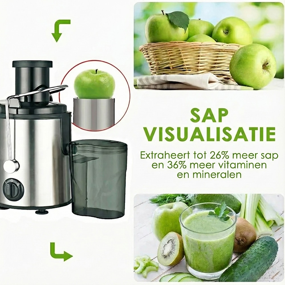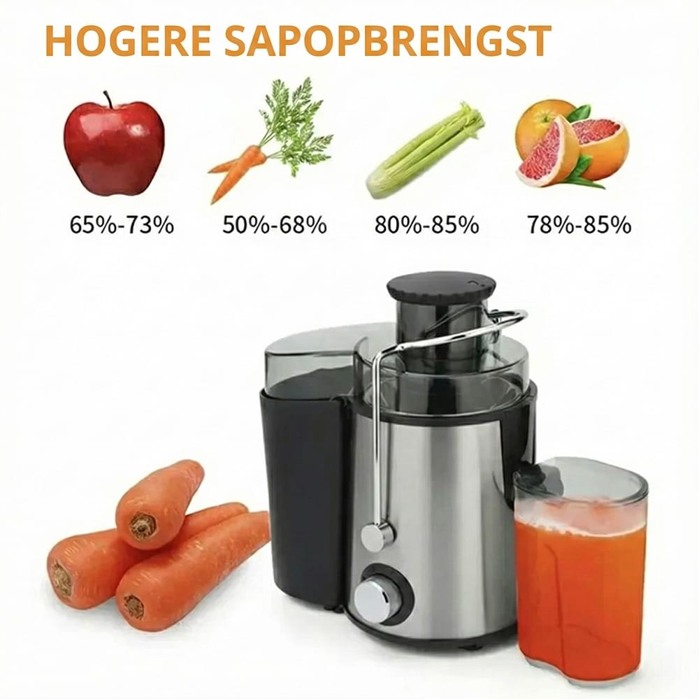 De Juicilox gebruikt geavanceerde centrifugale technologie met een 360-graden precisiefilter en krachtige 800W motor die extractiepercentages van 80-85% bereikt vergeleken met 50-68% bij standaardmodellen. Dit betekent tot 36% meer vitamines en mineralen worden behouden. Het roestvrij stalen filtermesh is fijner dan concurrenten, wat maximale voedingsextractie garandeert terwijl pulp effectief wordt gescheiden voor superieure sapkwaliteit.