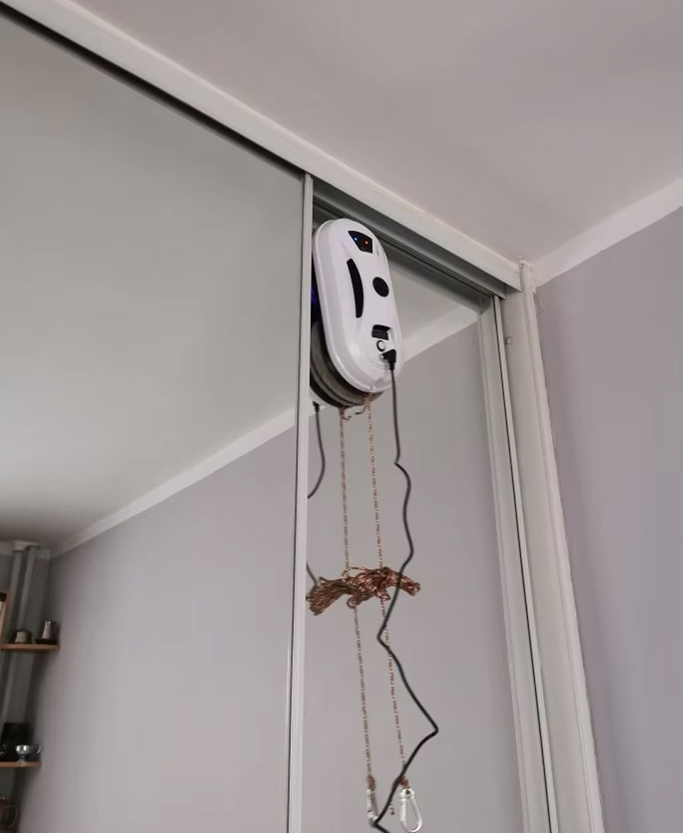 De Klearobo beschikt over een 150kg treksterkte veiligheidstouw en handhaaft zuigkracht 20 minuten na stroomuitval. Deze dubbele beveiliging garandeert absolute veiligheid, zelfs op grote hoogtes tot 6 meter.