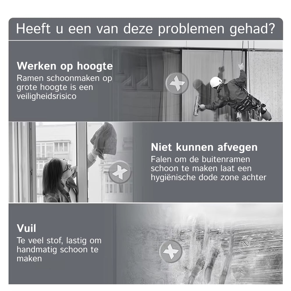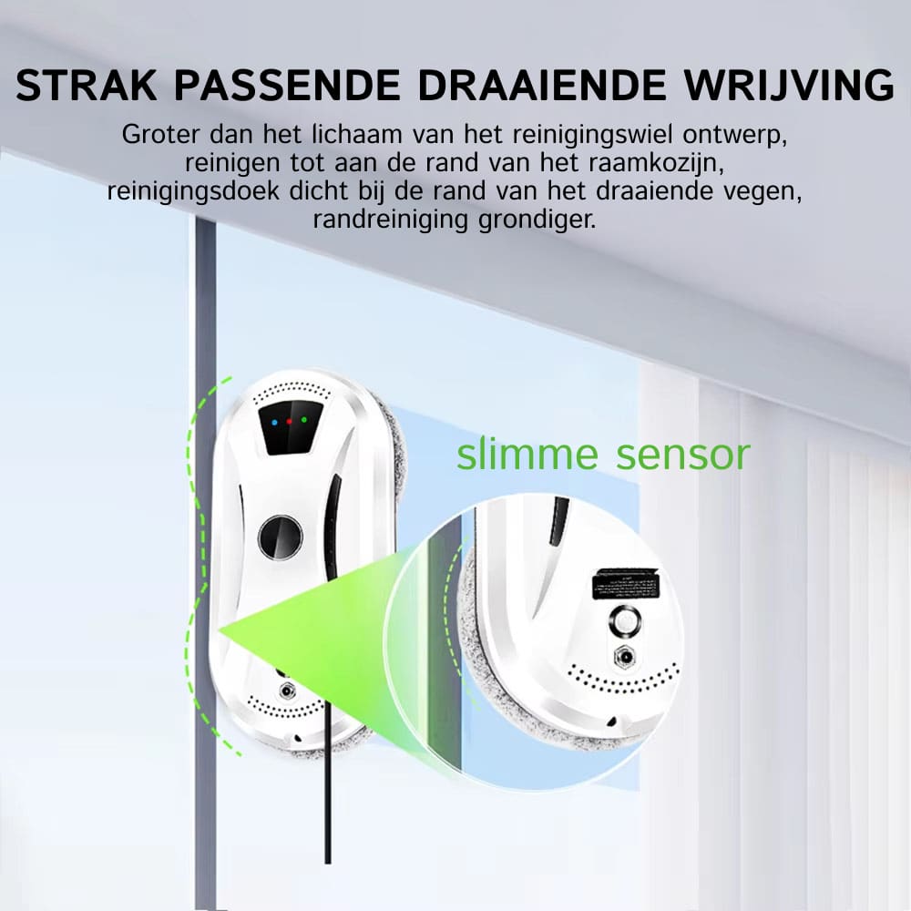 Absoluut! De Klearobo is speciaal ontworpen voor binnen- en buitenramen. Het veiligheidstouw en krachtige zuigkracht maken buitenramen schoonmaken veilig en effectief tot 6 meter hoogte.