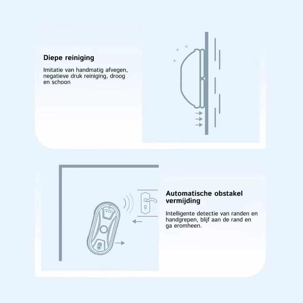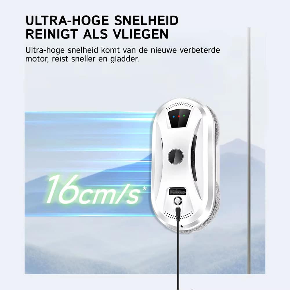 Met zijn ultra-hoge snelheid van 16cm/s maakt de Klearobo één vierkante meter in slechts 4 minuten schoon. Een standaard raam is meestal binnen 5-8 minuten volledig gereinigd.