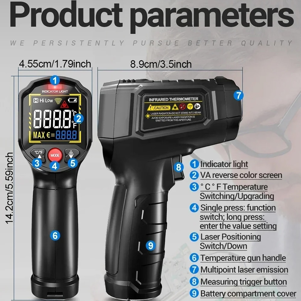 Safely measure surface temperatures without physical contact, protecting you from burns, electrical hazards, and contamination whilst extending the thermometer's lifespan through reduced wear and tear.