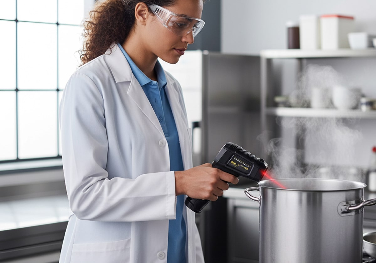 Absolutely. The Lazeriok is perfect for checking cooking surfaces, refrigeration units, and food storage temperatures without contact. It helps maintain food safety standards and HACCP compliance in professional kitchens efficiently.